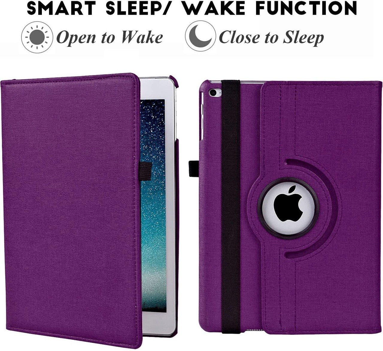 iPad 9.7 2018/2017ケース 新型(Newモデル)/iPad Air/iPad Air2カバー iPad 9.7インチ(第6、5世代)軽量 手帳型 360度回転スタンド オートスリープ機能 3段階調節可能 固定バンド 脱落防止耐衝撃 耐久性 おしゃれデニム生地 (スミレ色)