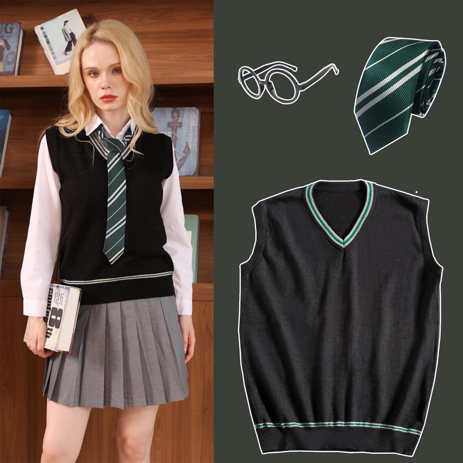 [Formemory] 魔法 コスプレ セット グリフィンドール チョッキ セーター 魔法 チョッキ ハロウィン コスプレ 仮装 日常 着用 男女兼用 チョッキ メガネ ネクタイ 3点セット
