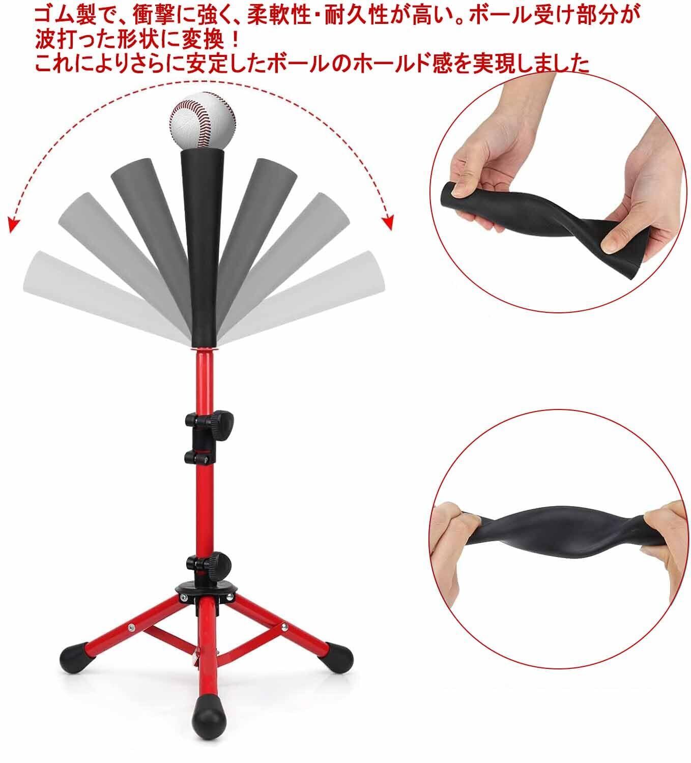 バッティングティー 野球 バッティング 練習スタンド ティースタンド 高さ67cm-116cm調整「汎用交換ラバー1本付属」 ボール置きティー ホルダー 少年 大人運動 練習 打撃 トレーニング 段階式 硬式/軟式球/ソフトボール 兼用レジャー ファミリースポーツ