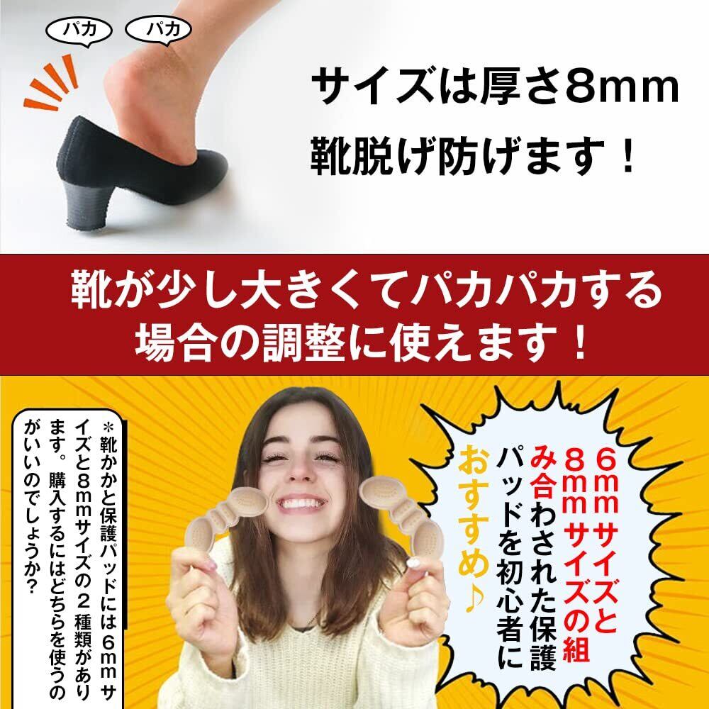 【セット内容】厚さ8mm/ベージュカラーのかかとパッド×8。【厚さは選べる2タイプ】靴ずれの痛みや、サイズが大きな靴を調節したい時には8mmをお勧めします。靴のかかとに隙間がほとんどない場合は6MMをお勧めします。または6mmサイズと8mmサイズの組み合わされた保護パッドを初心者におすすめ