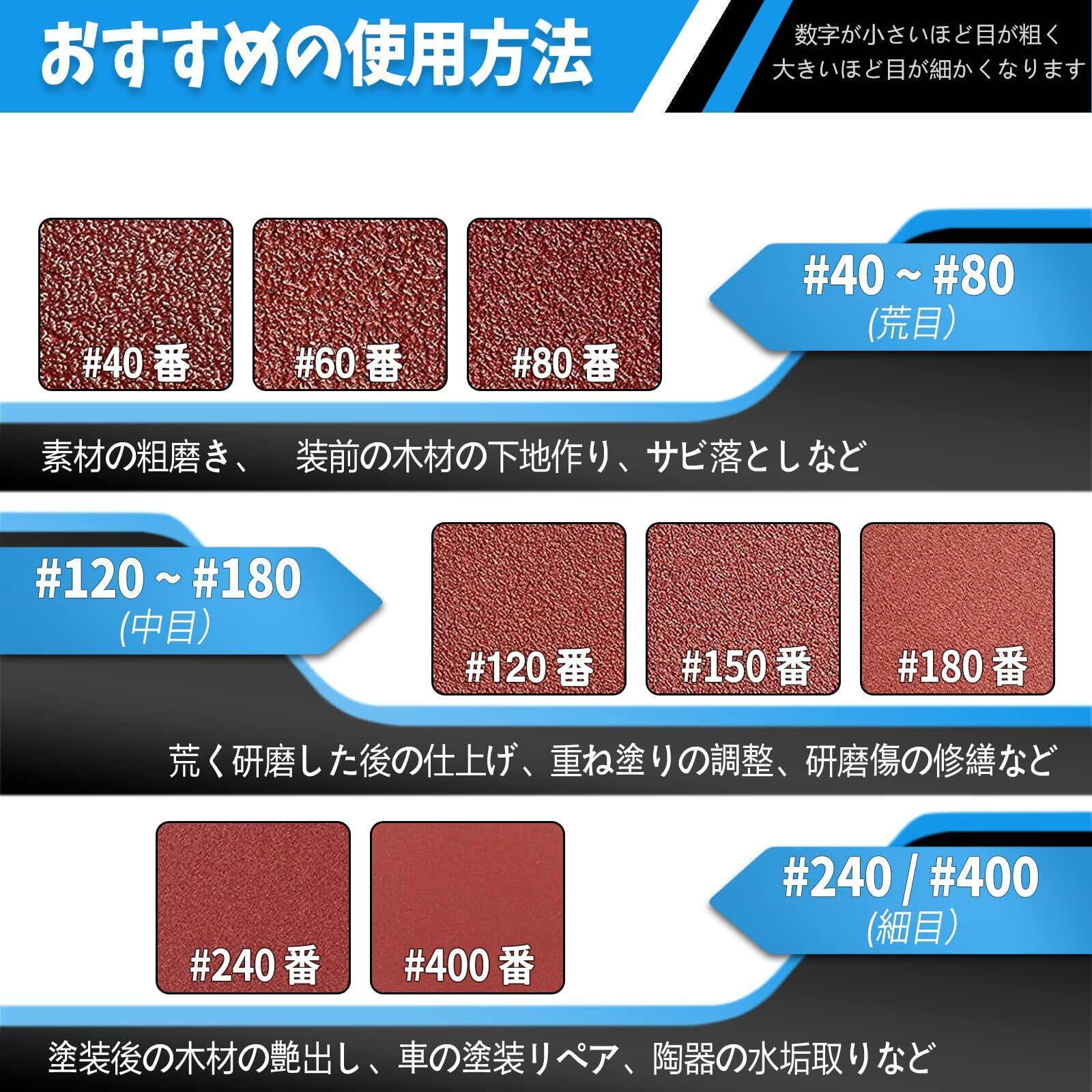 セット内容は、#40・#60・#80・#120・#180・#240・#400・#600の8種類のグリット(各10枚)です。これにより、粗削りから仕上げまで、様々な作業に対応が可能で、効率的に作業を進めることができます。各グリットは、必要な作業ごとに使い分けられるので、あなたの木工プロジェクトをサポートします!