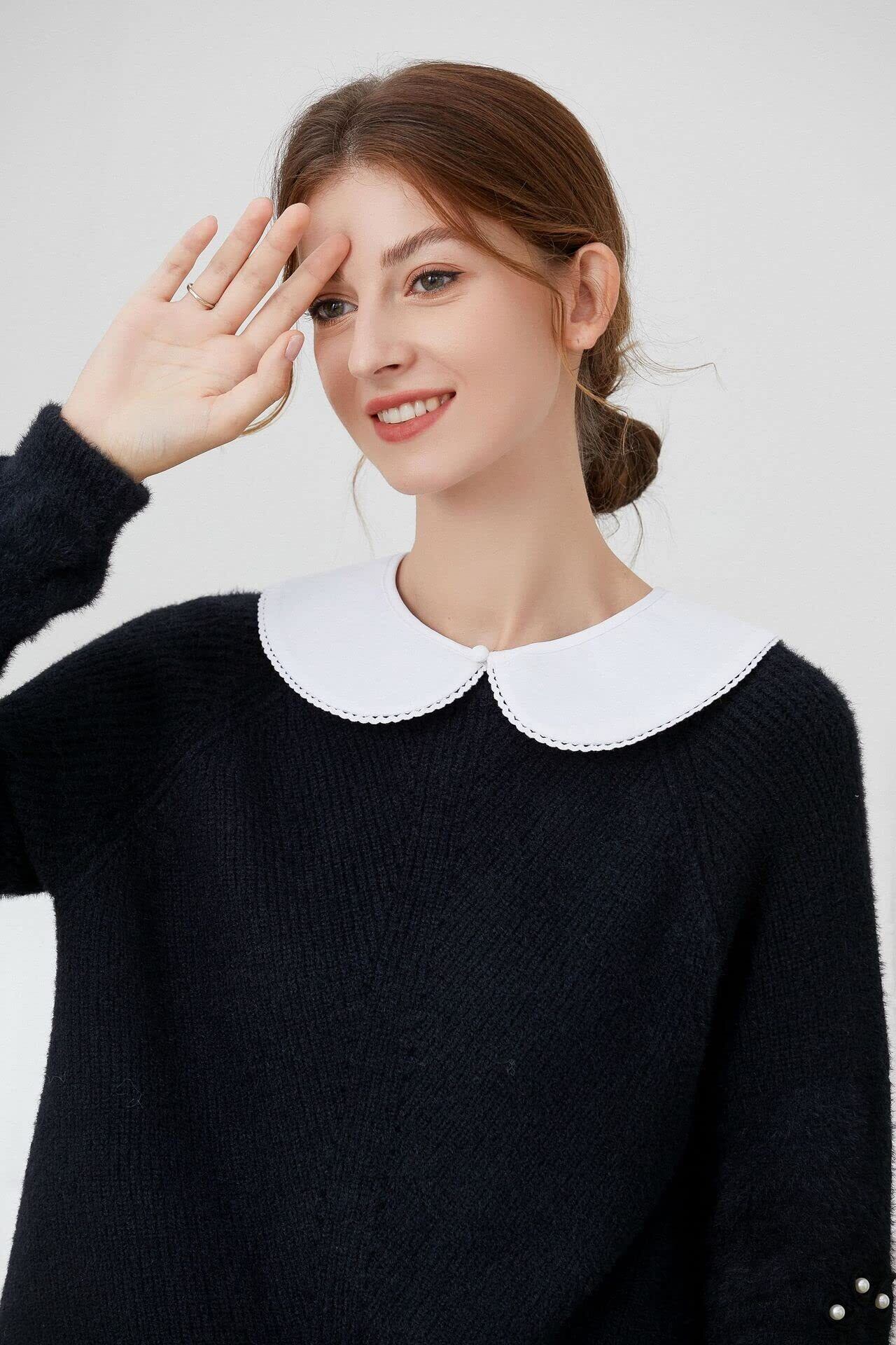 大人っぽさを引き立てるきちんとした角襟。通勤や就職などのフォーマルな場合で活用できます。着飽きた洋服もつけ襟・つけ裾で簡単コーディネート。