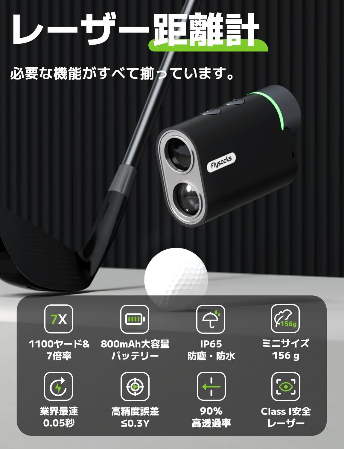Flysocks LCD ゴルフレーザー距離計 PF120距離測定器 mini 7倍率広視野角1100yd 90%高透過率 ゴルフ用 最速0.05S測定 IP65 防塵防水 小型 軽量 Type-C充電式 自動オフ機能 スロープモード ピンロックモード 高低差測定ON/OFF競技対応