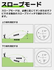 スロープモードとピンロックモードを搭載しており、プレーヤーのニーズに応じて瞬時に切り替え可能です。また、高低差測定機能も搭載しており、コースの地形を把握しやすく、戦略的なプレーをサポートします。