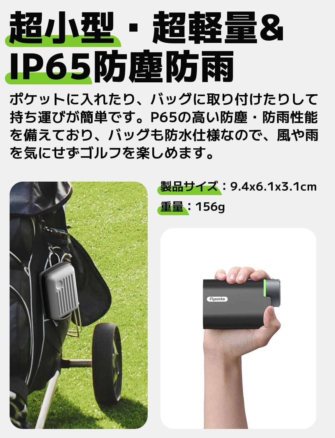 【素人でも使いやすい ゴルフ専用】Flysocks ゴルフ 距離計は、ゴルフ初心者からプロまで幅広いゴルファーに使いやすいように設計されたゴルフ専用の距離測定器です。ピンロックモード:旗竿が背景に重なると、距離計は最前部の旗竿を検出し、ピンを自動ロックして振動でお知らせます。スロープモード: コースの傾斜角度に応じて調整でき、より実測値に近い距離を測定できます。連続測定:複雑な地形や坂道であっても、目標地点までの直線距離を正確に測定できます。