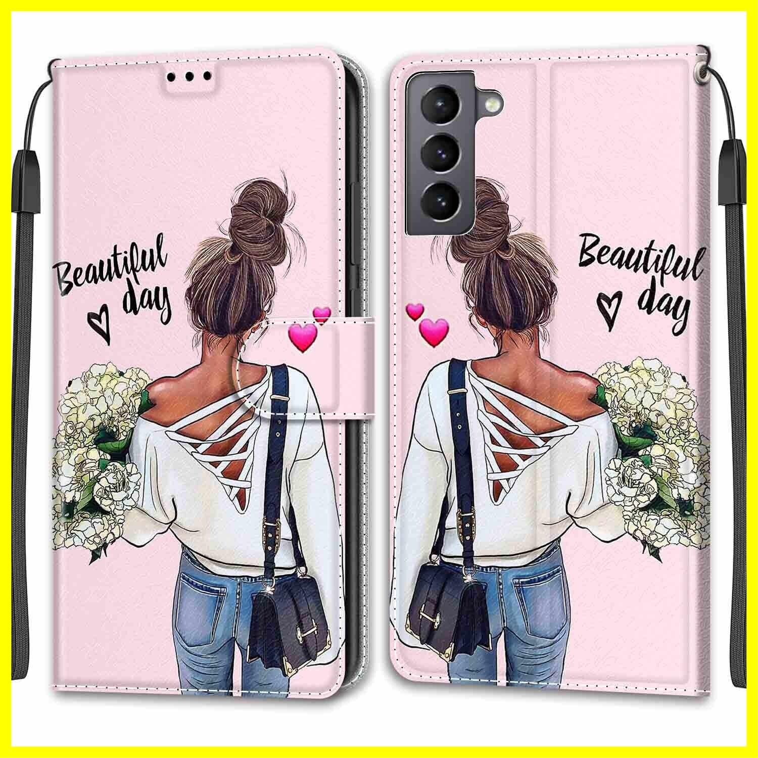 [Galaxy S22対応] ケース手帳型 SC-51C SCG13 ケース サムスン ギャラクシーS22 手帳型ケース 携帯ケース カバー スマホケース 財布型 スタンド機能 耐衝撃 全面保護 薄型 耐摩擦 可愛い (Samsung Galaxy S22 SC-51C SCG13 対応) 女の子と花