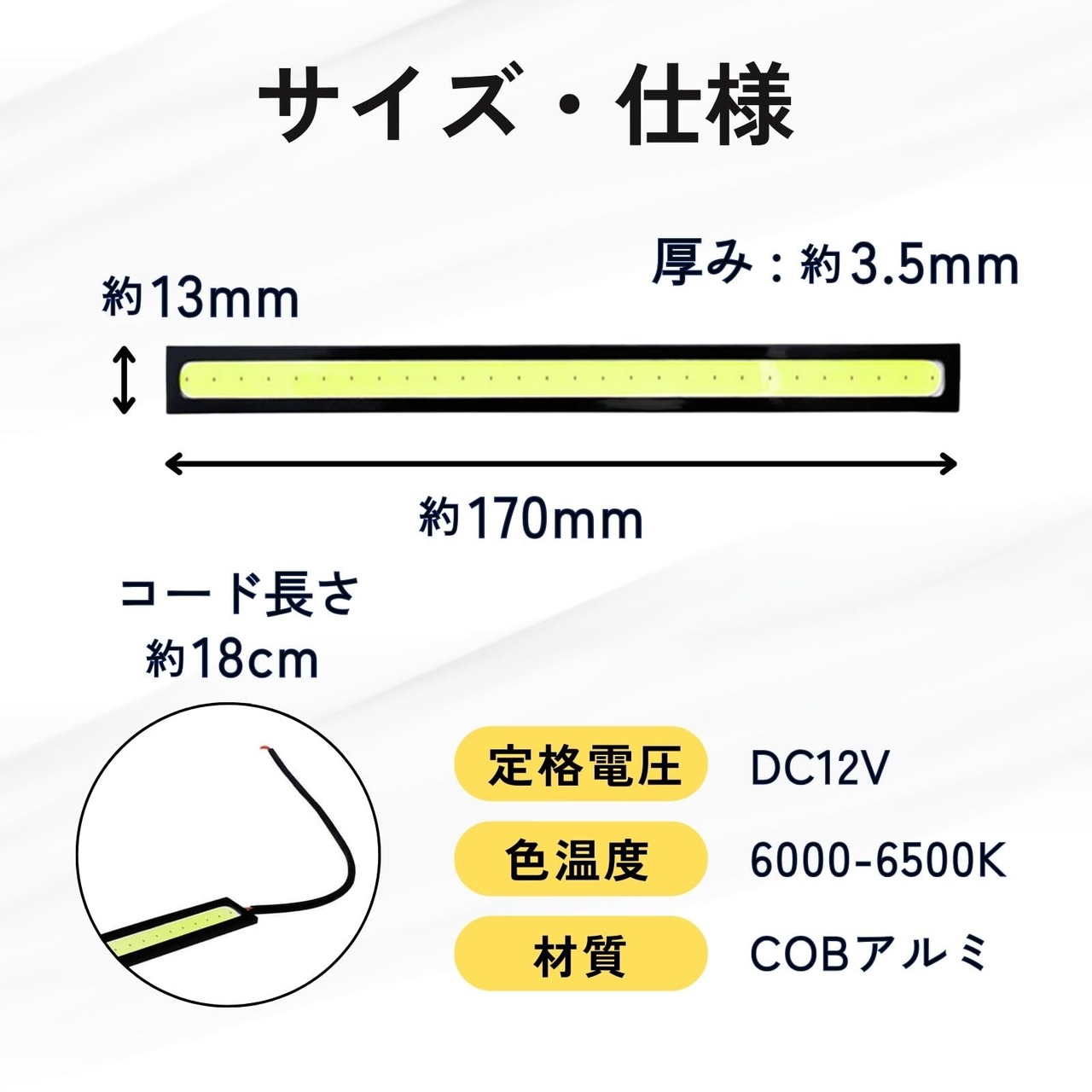 全面発光タイプで薄型で爆光のLED(COB)デイライト(バーライト)4本セットになります。