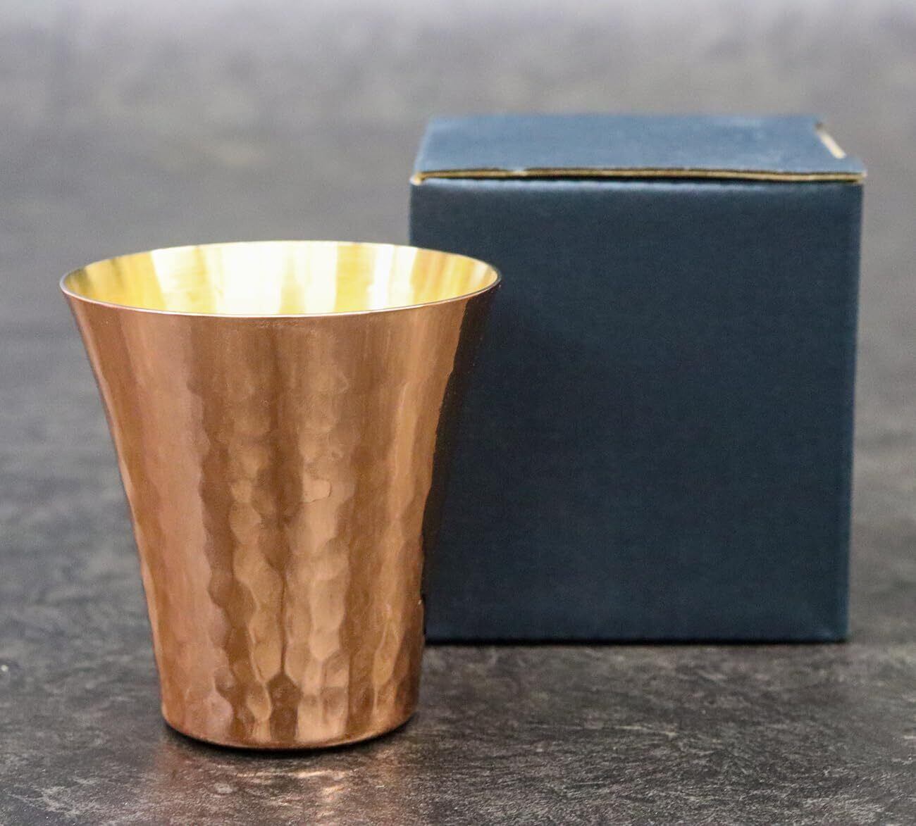 新潟県燕市の職人の手によって、一つ一つ磨き上げた銅製冷酒カップです。カップ表面は、槌目模様入りで洋食器でありながら、和の雰囲気のある和モダンなデザインです。カップ内面は、職人の手により磨き金メッキした煌びやかなデザインです。