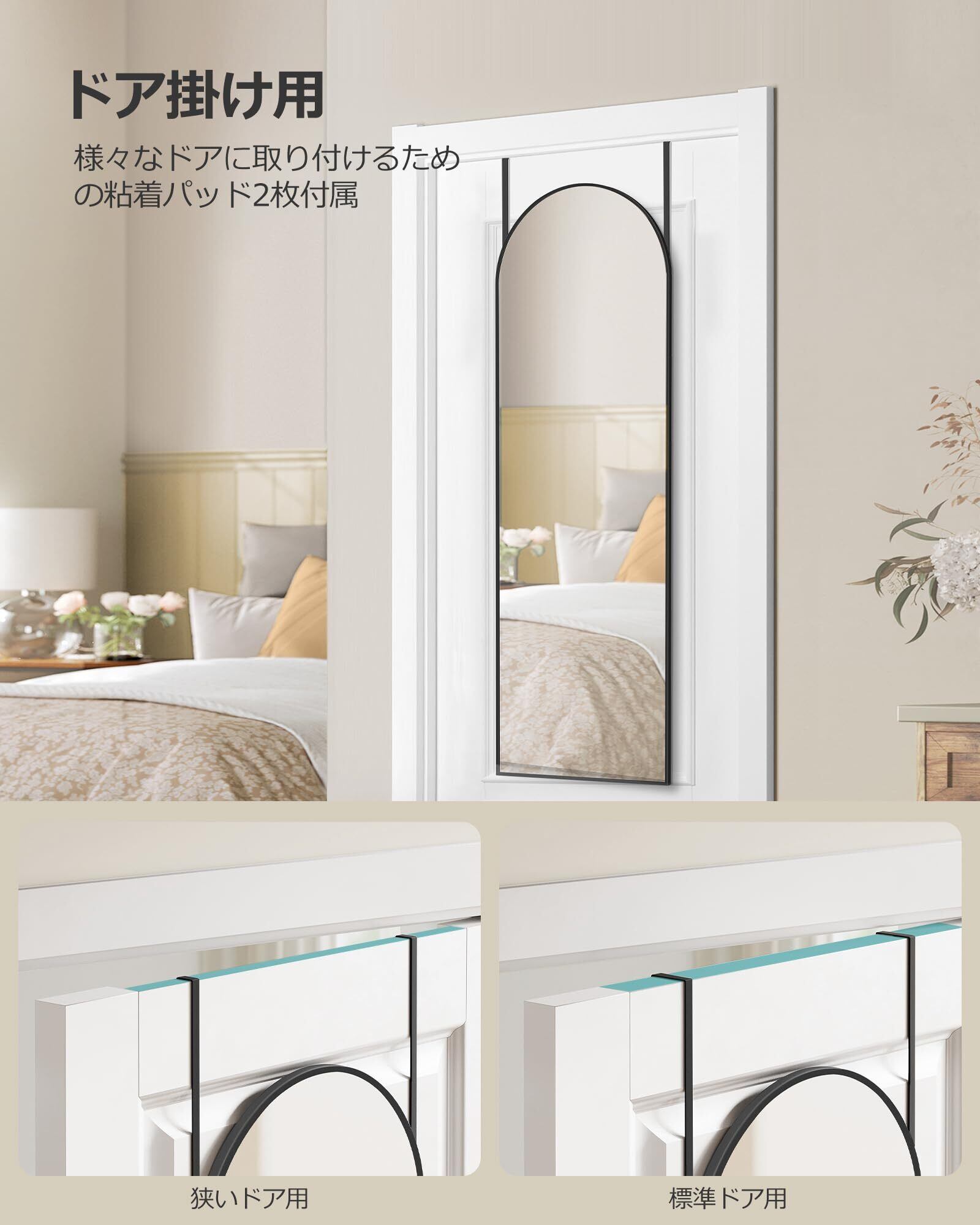 SONGMICS 姿見鏡 全身鏡 2way 壁掛け ドア掛け 全身ミラー 高さ120cm 幅40cm おしゃれ アルミ合金フレーム 飛散防止 アーチ型 大型 鏡 ブラックLFM033B01