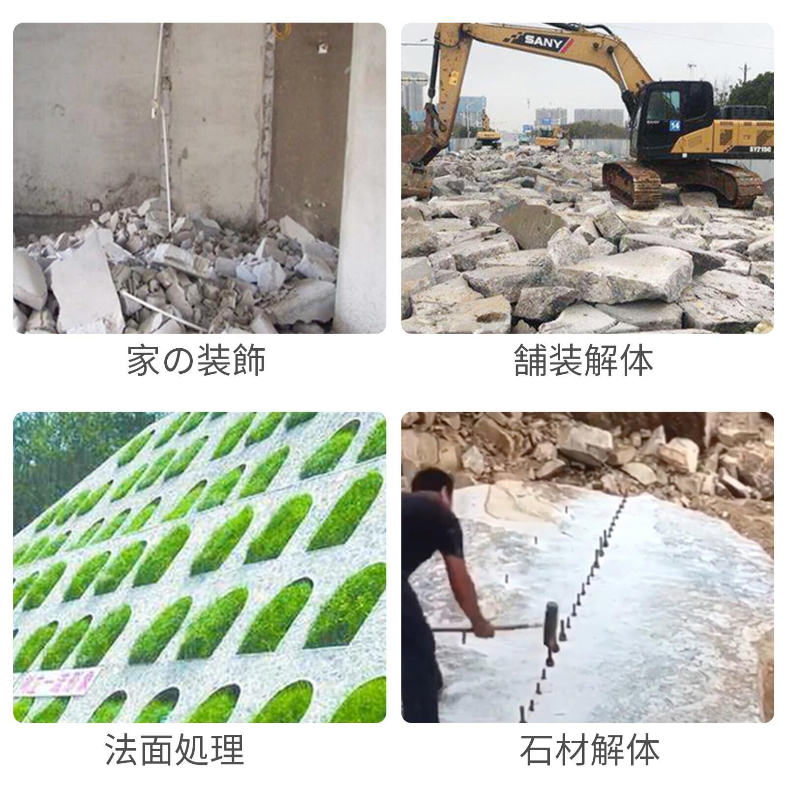 【用途】石割りウェッジ、石、コンクリートブロック、大理石、花崗岩、その他の硬い岩石の加工や分割に使用できます。直径18mm、深さ40mmの穴で使用する必要があります。
