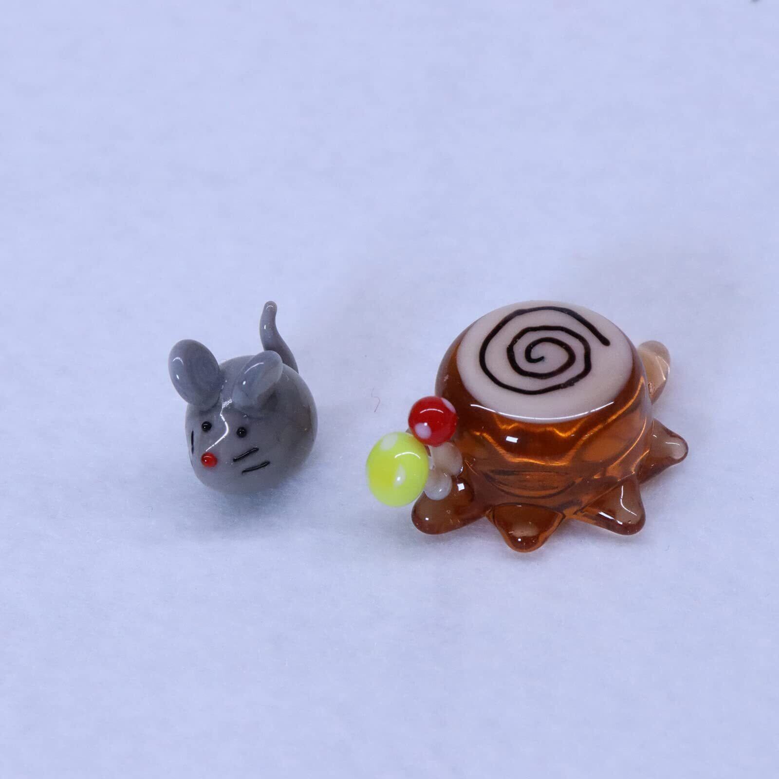 新 かわいらしい ガラス細工 ネズミと切り株