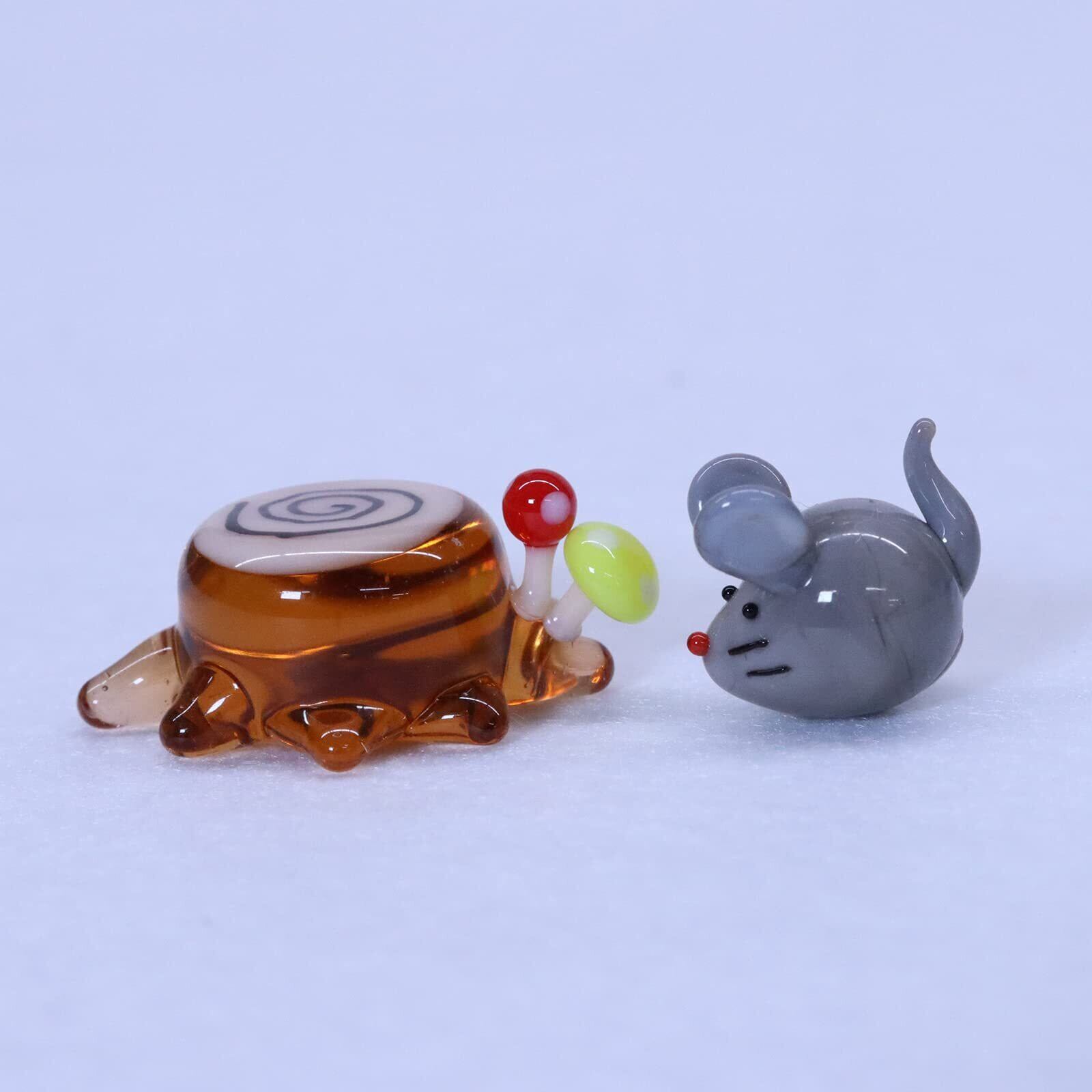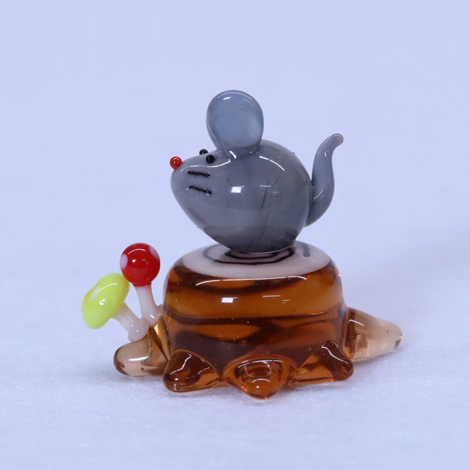 [新 かわいらしい ガラス細工 ネズミと切り株]