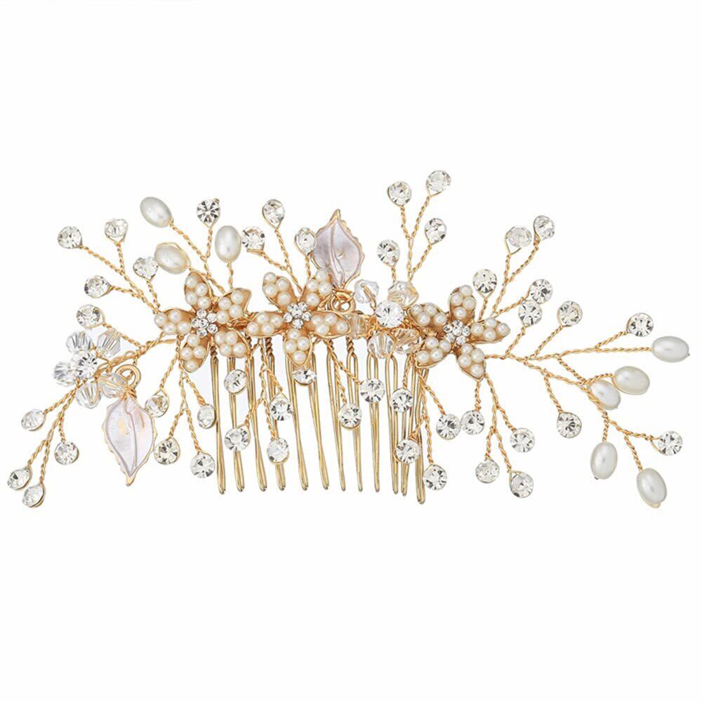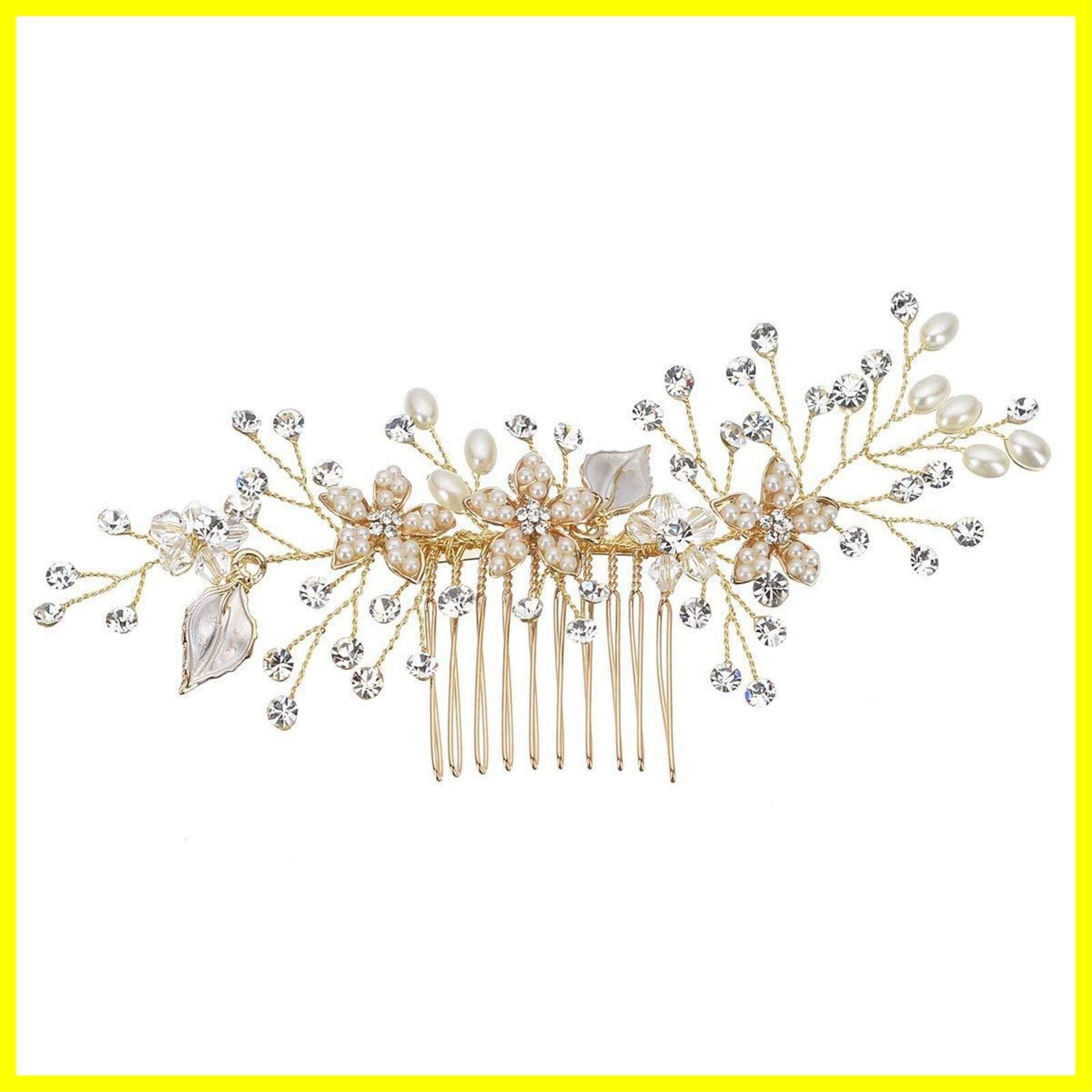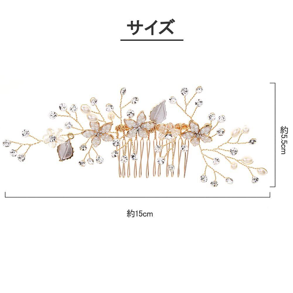 DFsucces パール 髪飾り ヘアコーム クリスタル ヘアアクセサリー フォーマル ブライダルアクセサリー ウェディング パーティー花嫁 ヘッドドレス 髪飾り 1個 (ゴールド)