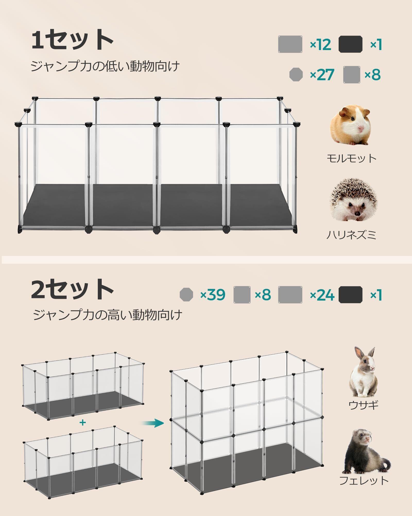 【広くて安全】 この小動物用囲いは、モルモット、ハムスター、ウサギなどが走り回ったり探索したりできる広々としたスペースを提供します。滑らかなパネル構造で、脱走の隙を与えません。