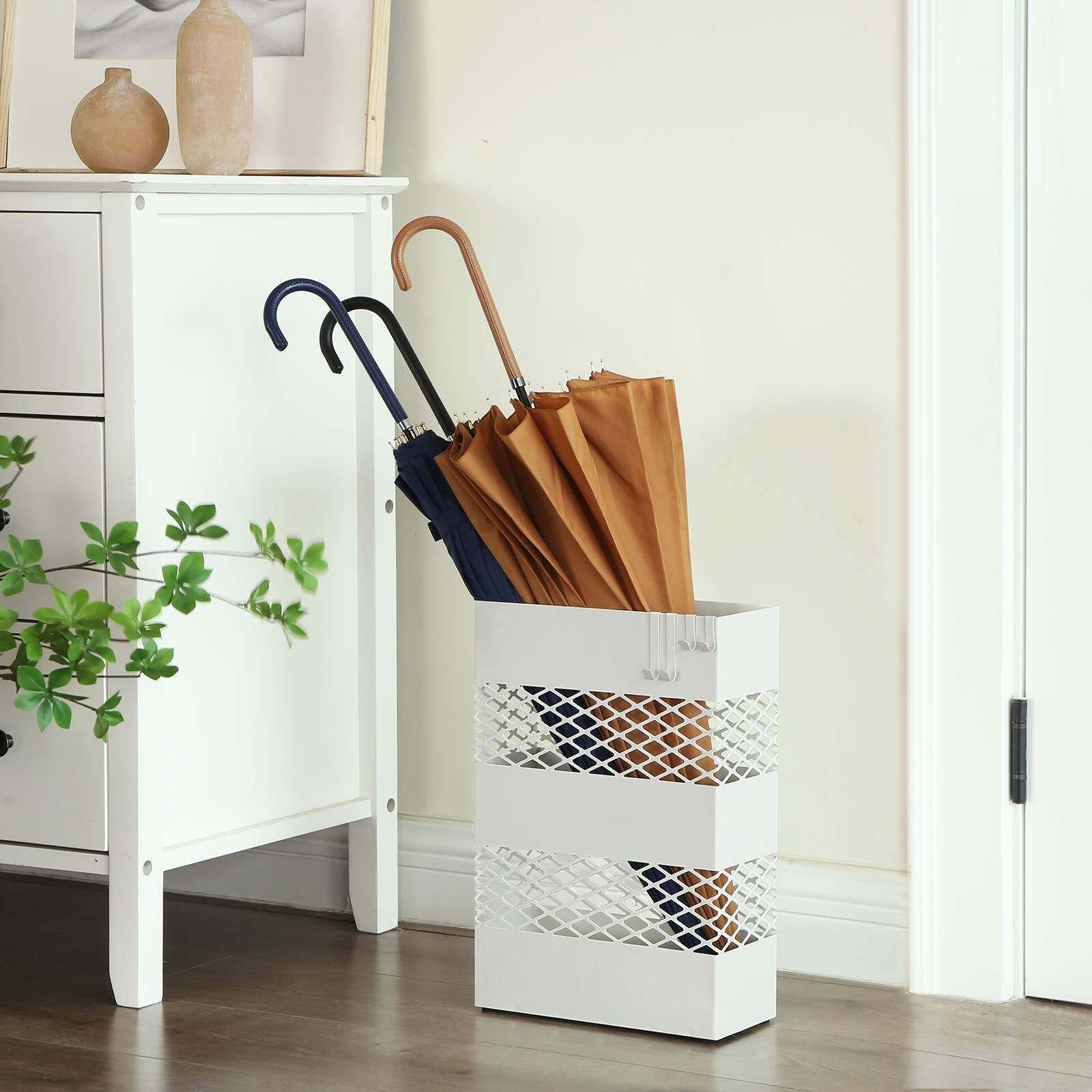 SONGMICS 傘立て 傘入れ スリム 安定 業務用 傘収納 着脱式水受け皿付き 折り畳み傘用フック付き 玄関収納 インテリア おしゃれ ホワイトLUC002W01