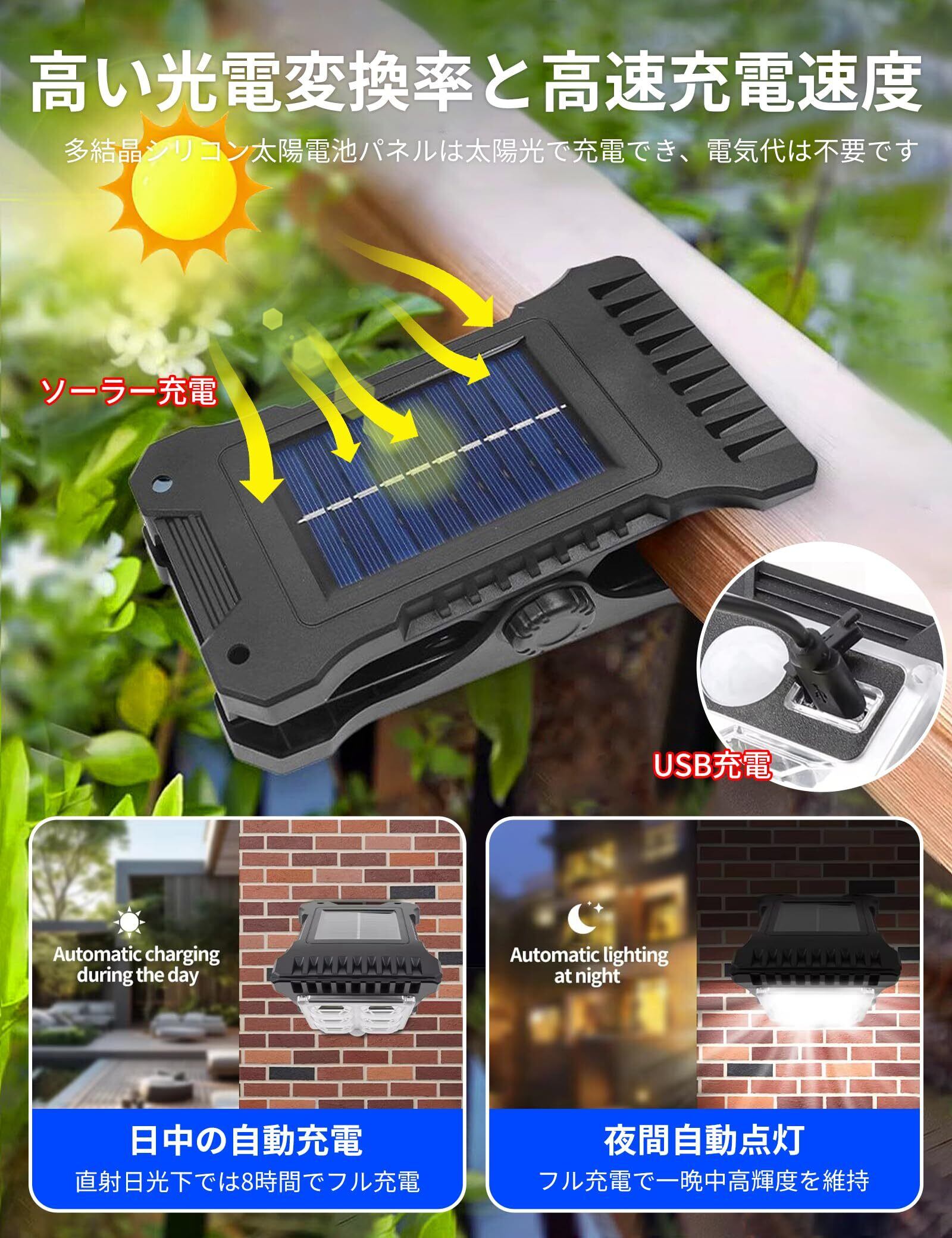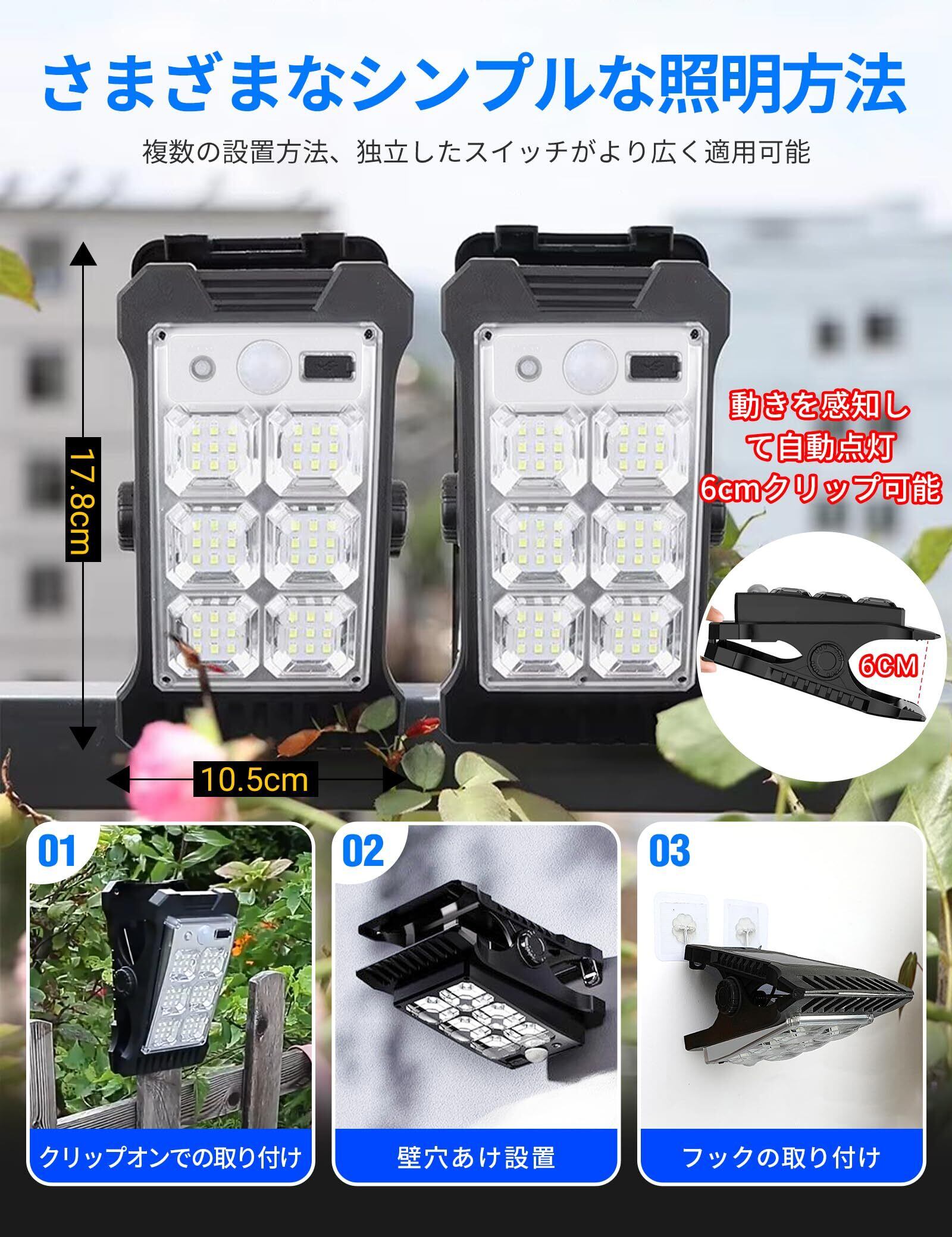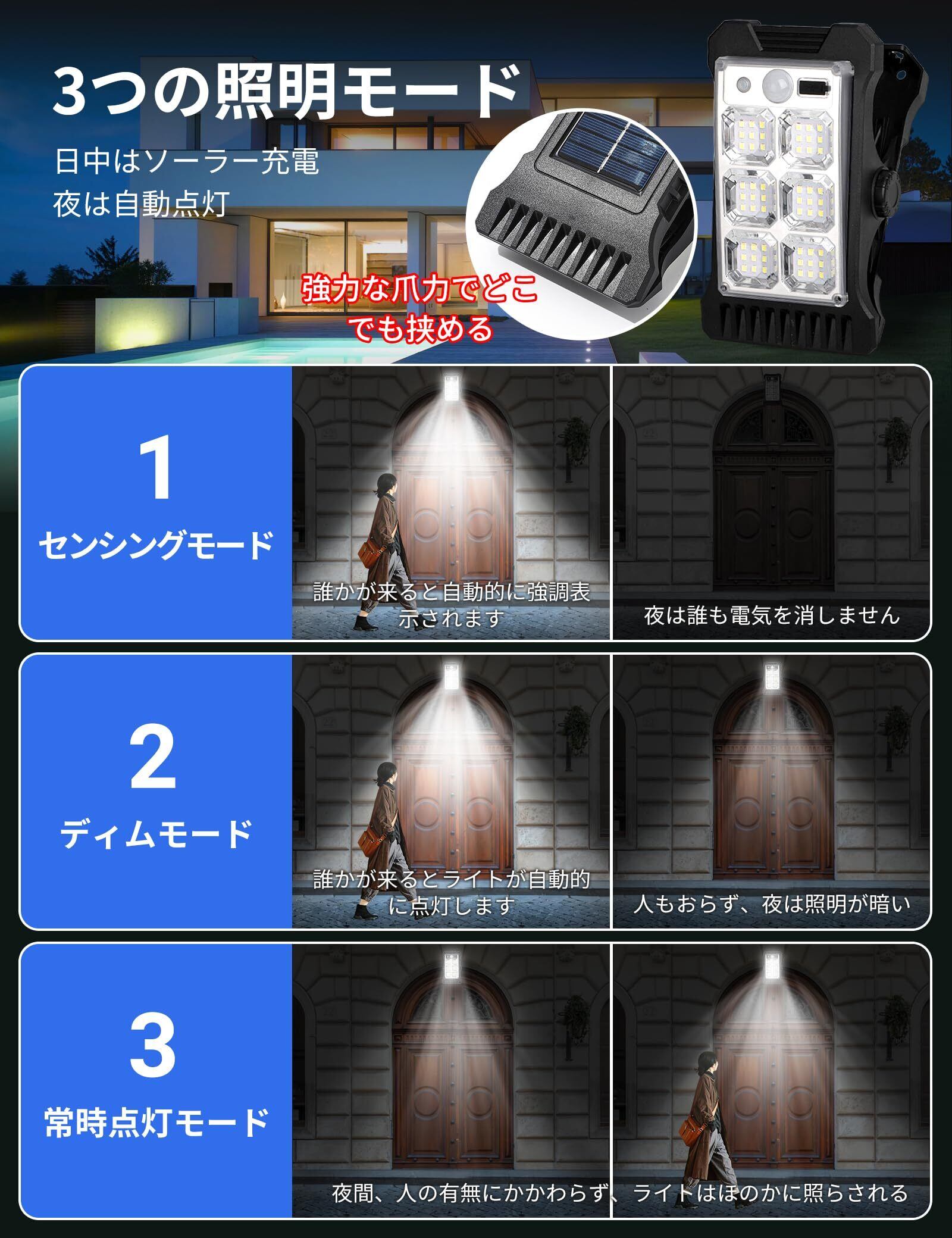 aninako センサーライト 屋外 ソーラーライト クリップ式 屋外 人感led 太陽光発電 簡単取り付け 省エネ 防水 防犯 高輝度 防災 停電 自動点灯 玄関 壁掛け 庭先 廊下用 (2)