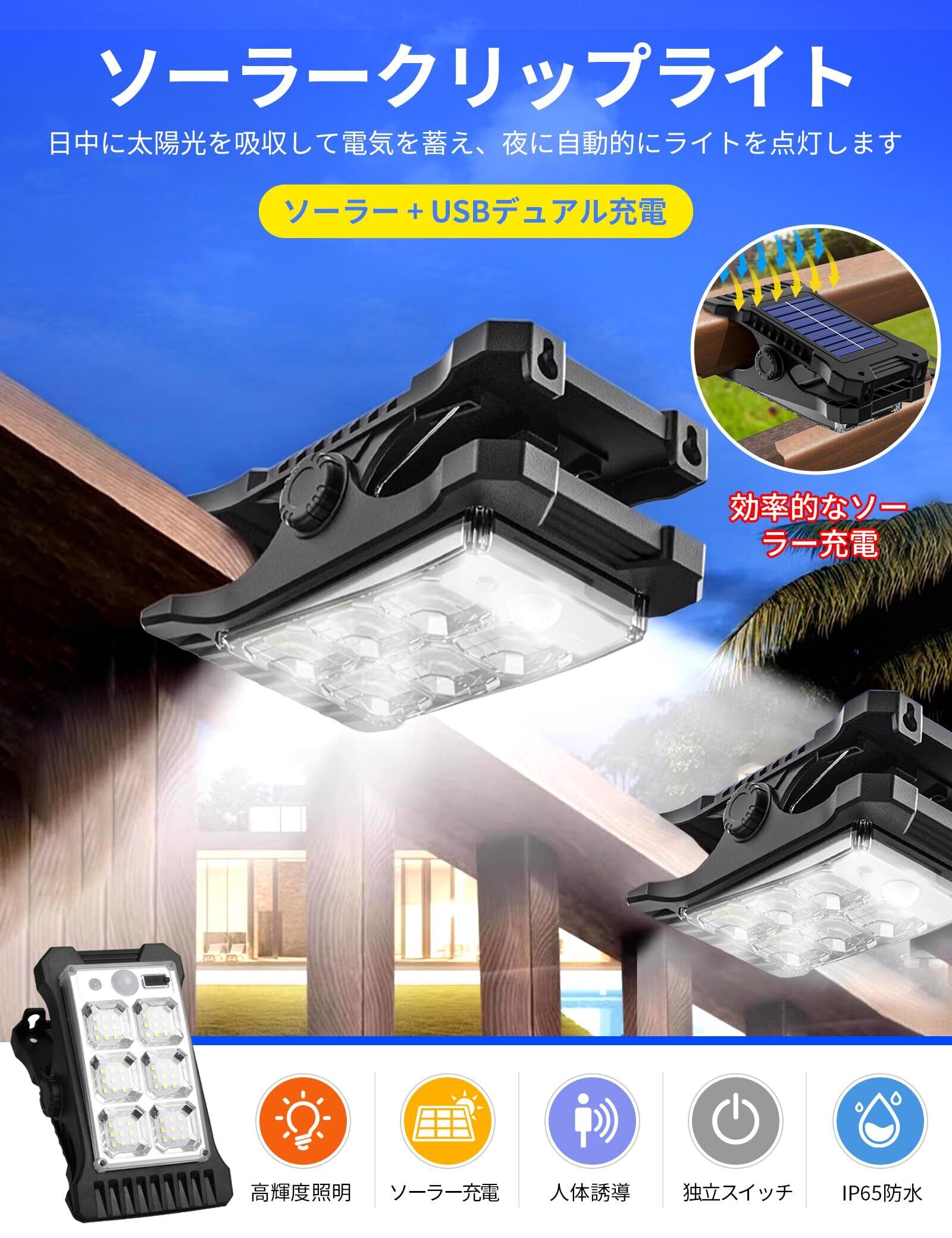 [aninako センサーライト 屋外 ソーラーライト クリップ式 屋外 人感LED 太陽光発電 簡単取り付け 省エネ 防水 防犯 高輝度 防災 停電 自動点灯 玄関 壁掛け 庭先 廊下用 (2)]