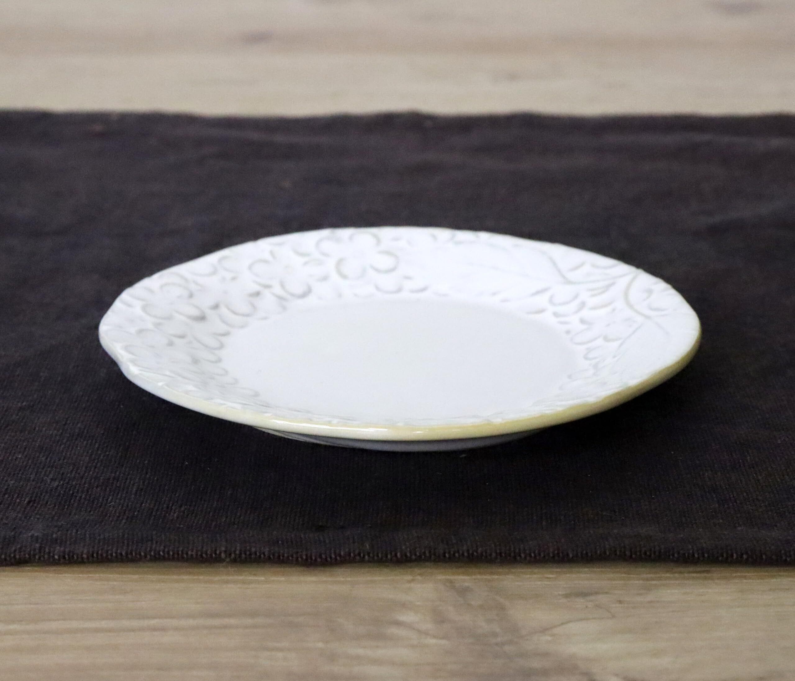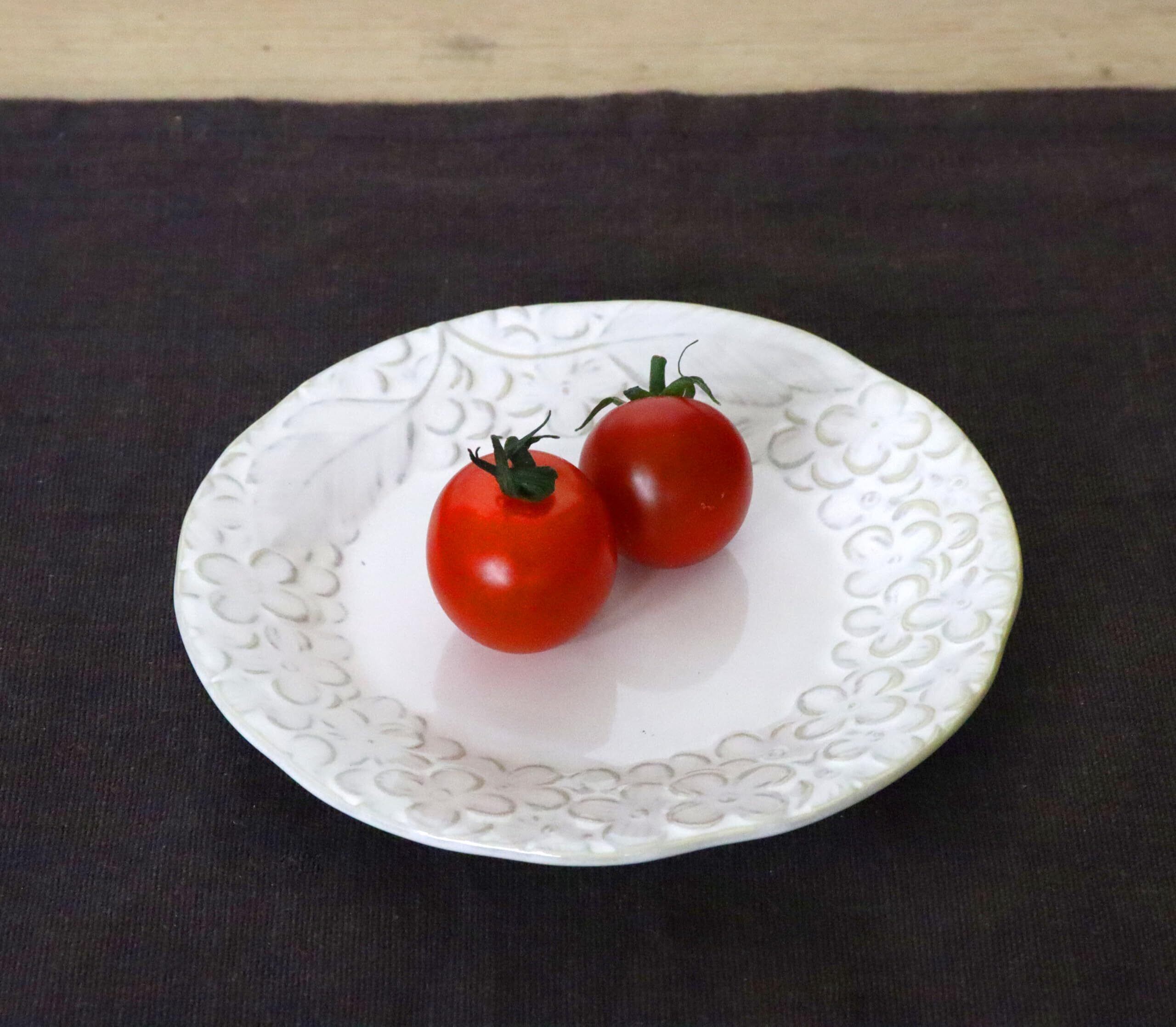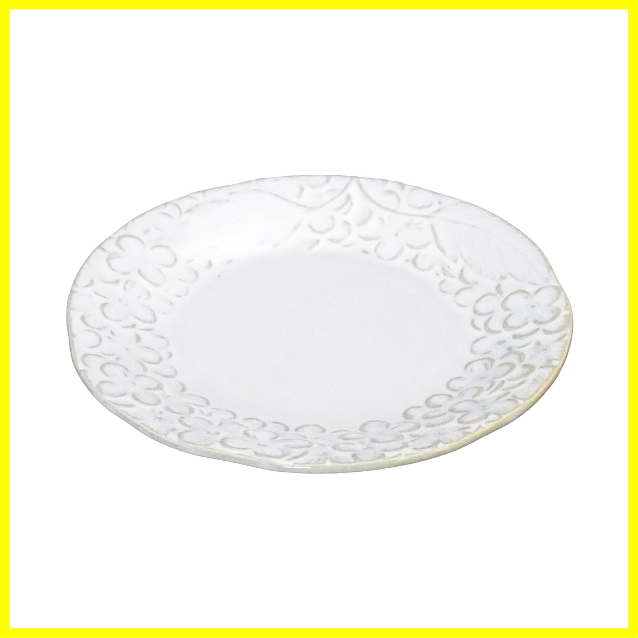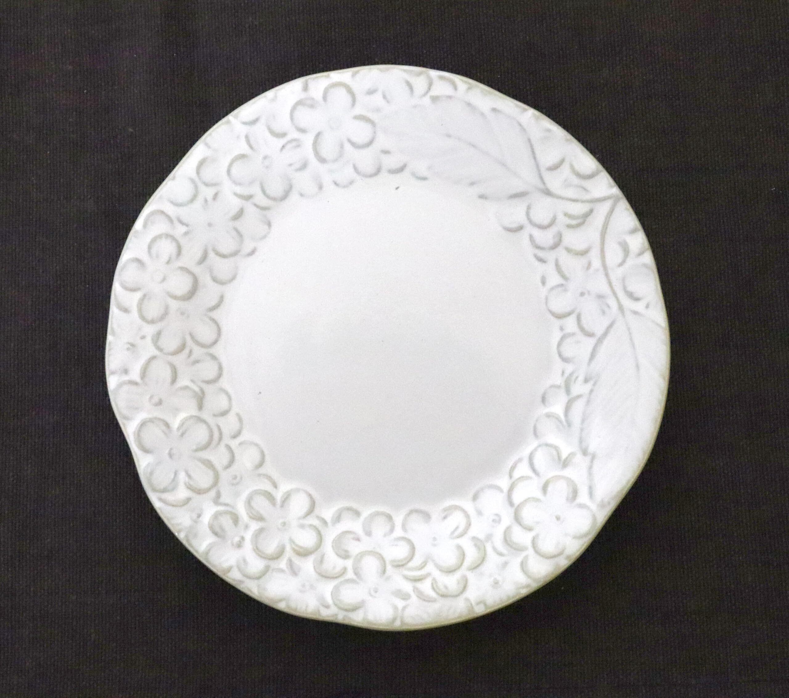 [皿 取り皿 小皿 美濃焼 13.5cm 1枚電子レンジ 食洗機対応 【古都鎌倉のオーガニックカフェの店長がお薦めする紫陽花のレリーフ】 陶磁器 ケーキ皿 おしゃれ 丸 プレート ホワイト]