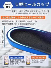 【安定性が高い】足を受けた衝撃を吸収しにくくなるので足が疲れやすくなります。U型のヒールカップはかかとをしっかりホールドし、踵の安定性を高め、足や靴の間の摩擦を減らしながら、外側に体重かからないよう横滑り防止できます