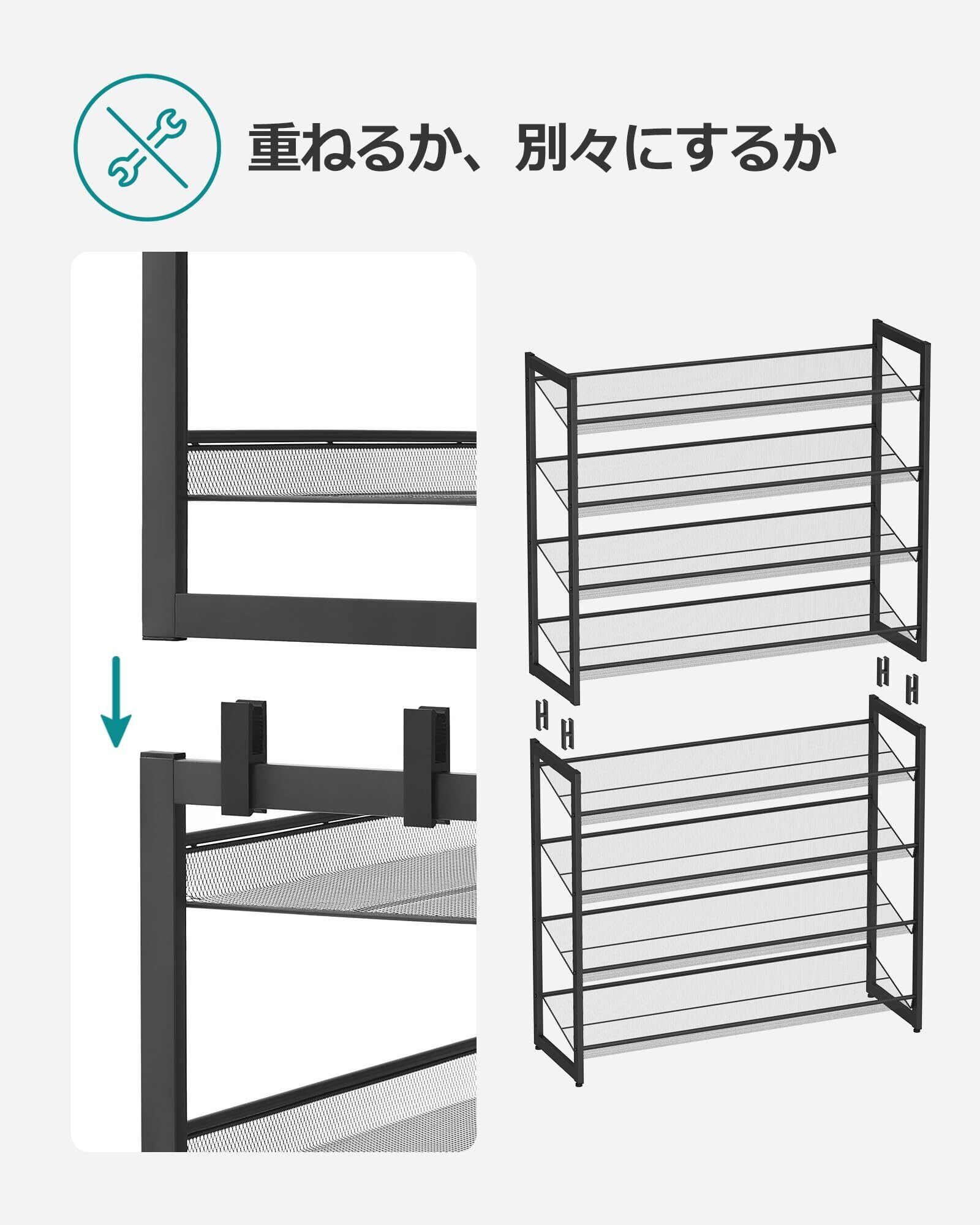 SONGMICS 8段 シューズラック 積み重ね可能な4段シューズオーガナイザー 2個セット LMR08BV1