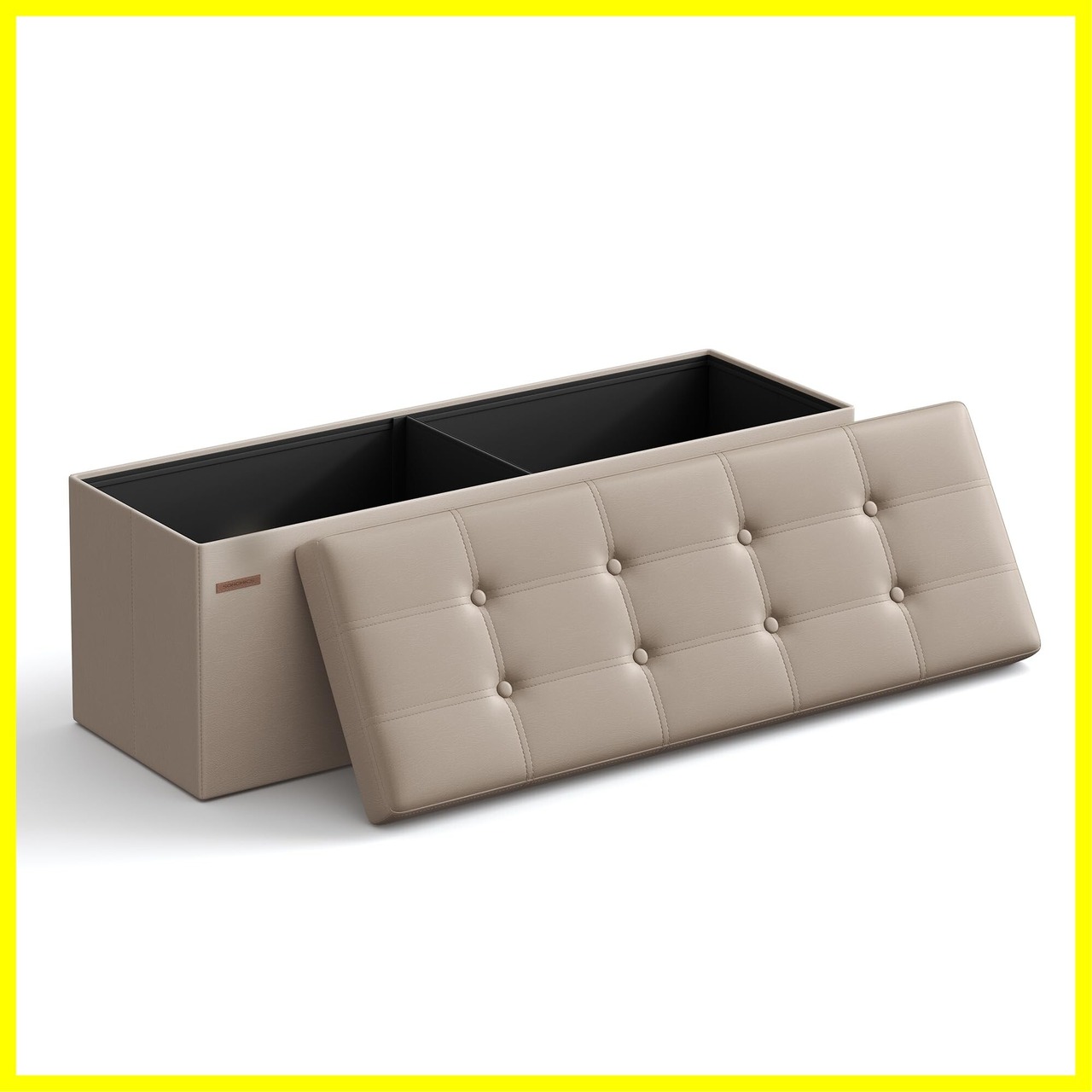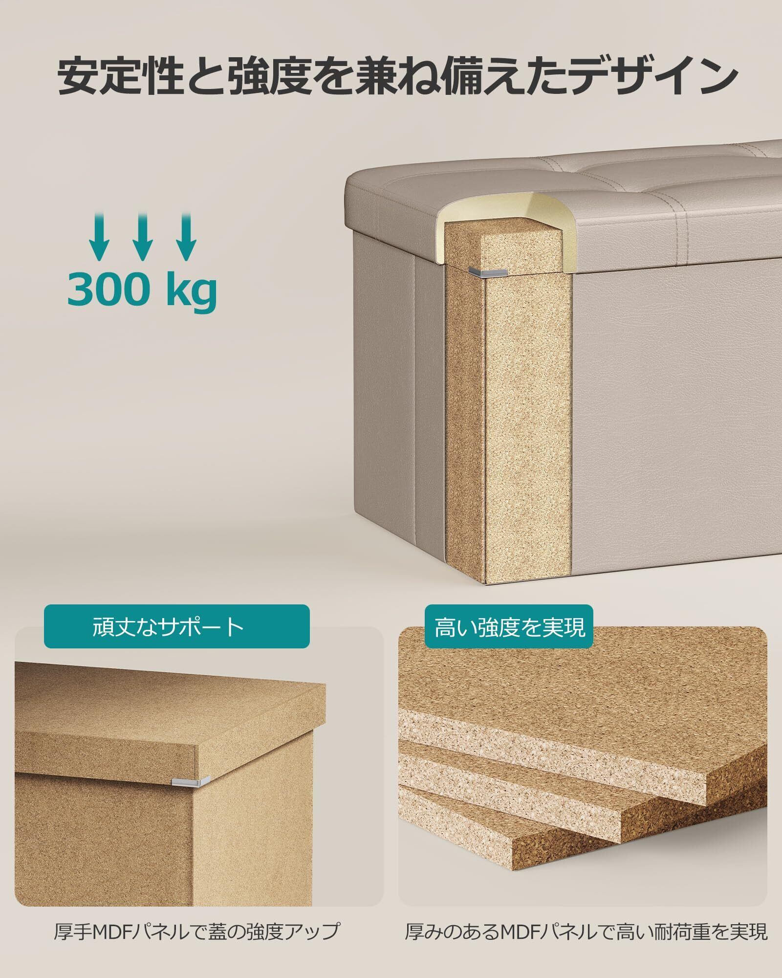 SONGMICS Mazie コレクション - オットマン 収納 スツール 43インチ 折りたたみ式収納オットマンベンチ、収納付きオットマン フットレストスツール 耐荷重300kg リビングルーム用 合成皮革 幅110 CM ベージュ LSF070K03