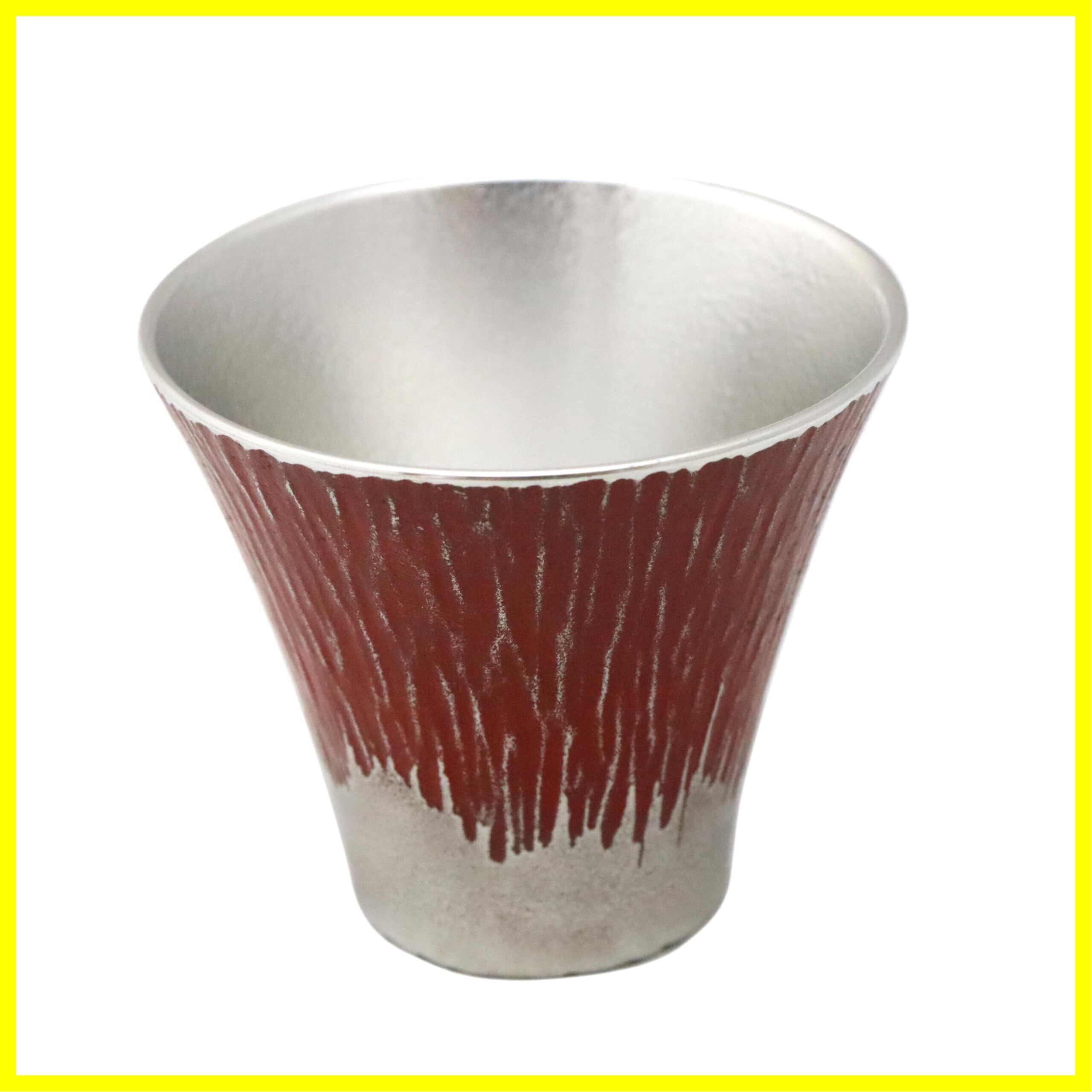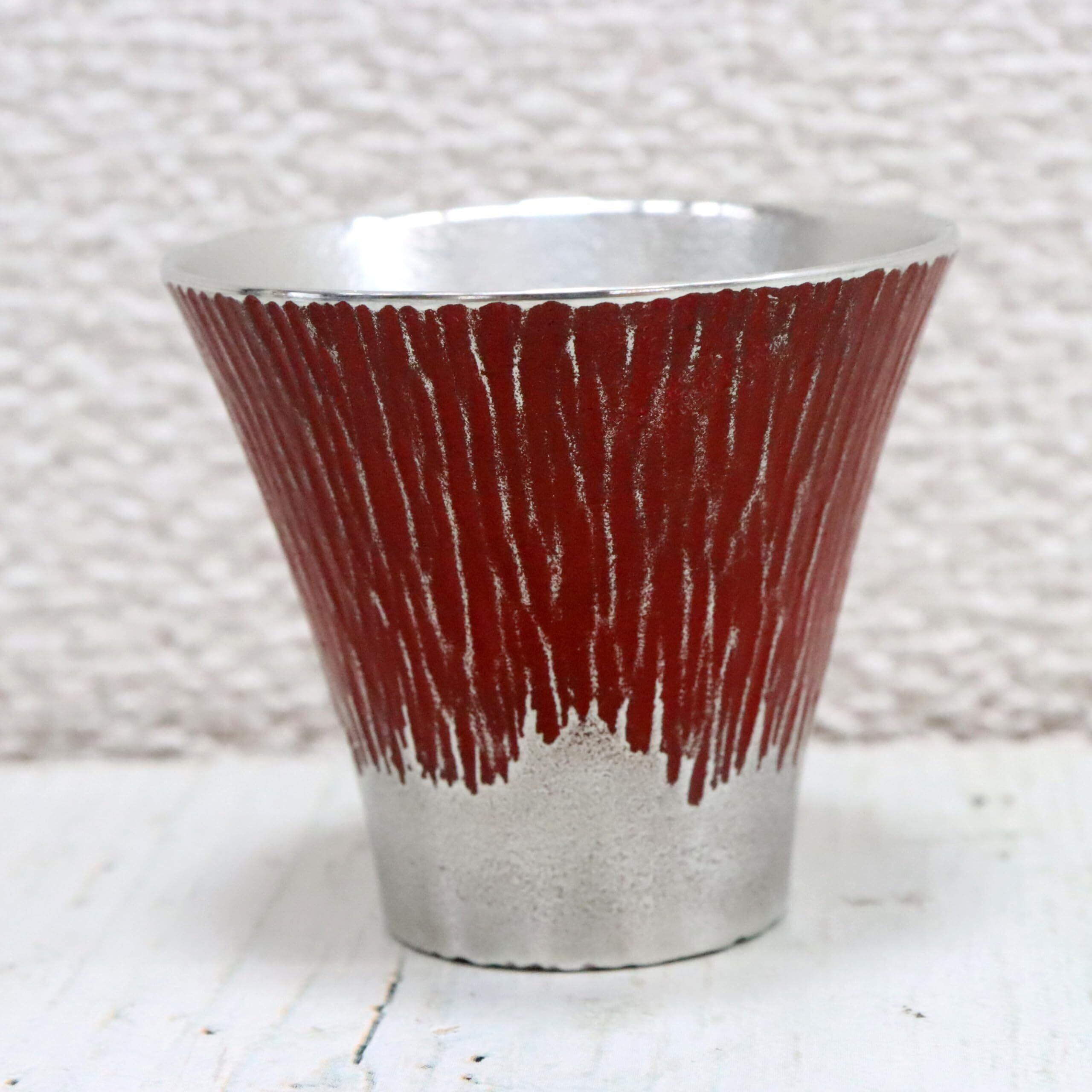 [大阪錫器 錫製 ぐい呑 富士山 朱 ギフトラッピング仕様]
