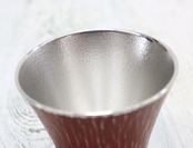 熱伝導率がよい錫の特徴をいかし、中の飲み物の冷たさ・温かさがよく伝わるぐい呑みです。ひとつひとつ内側を丁寧に磨きこみ、美しくなめらかな飲み口に仕上げています。