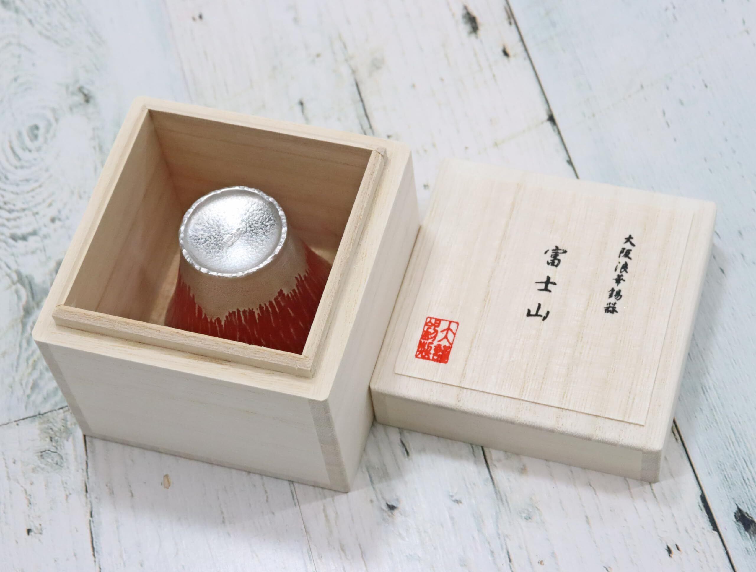 大阪錫器 錫製 ぐい呑 富士山 朱 ギフトラッピング仕様