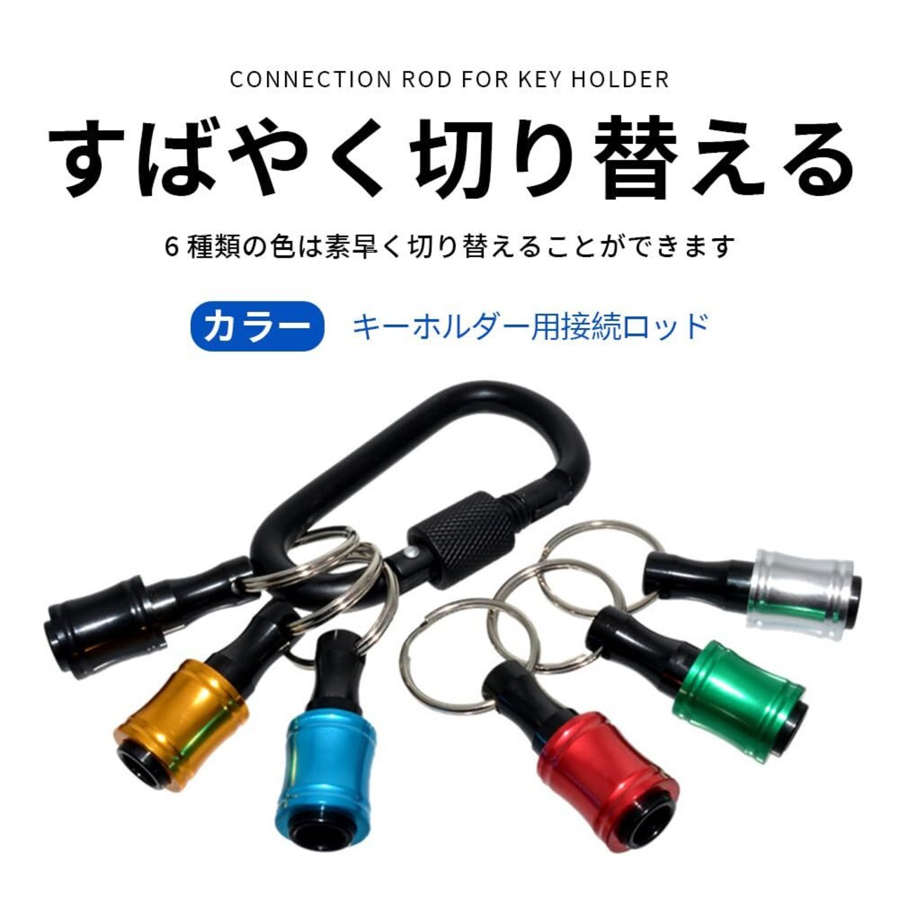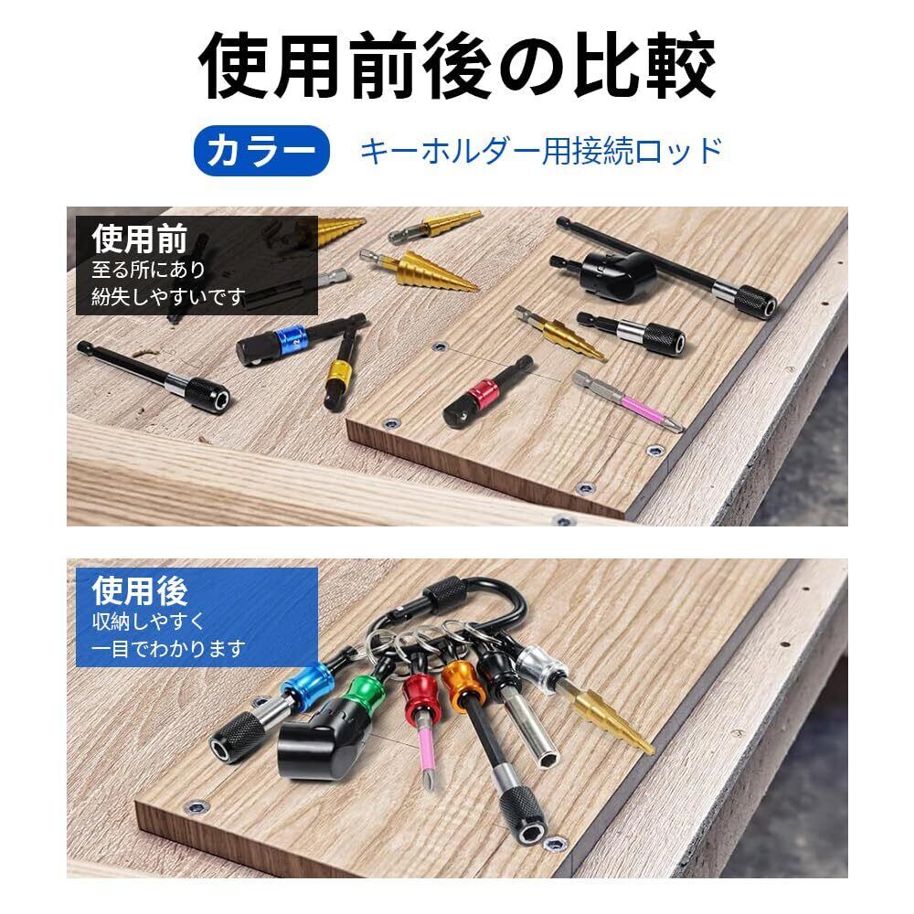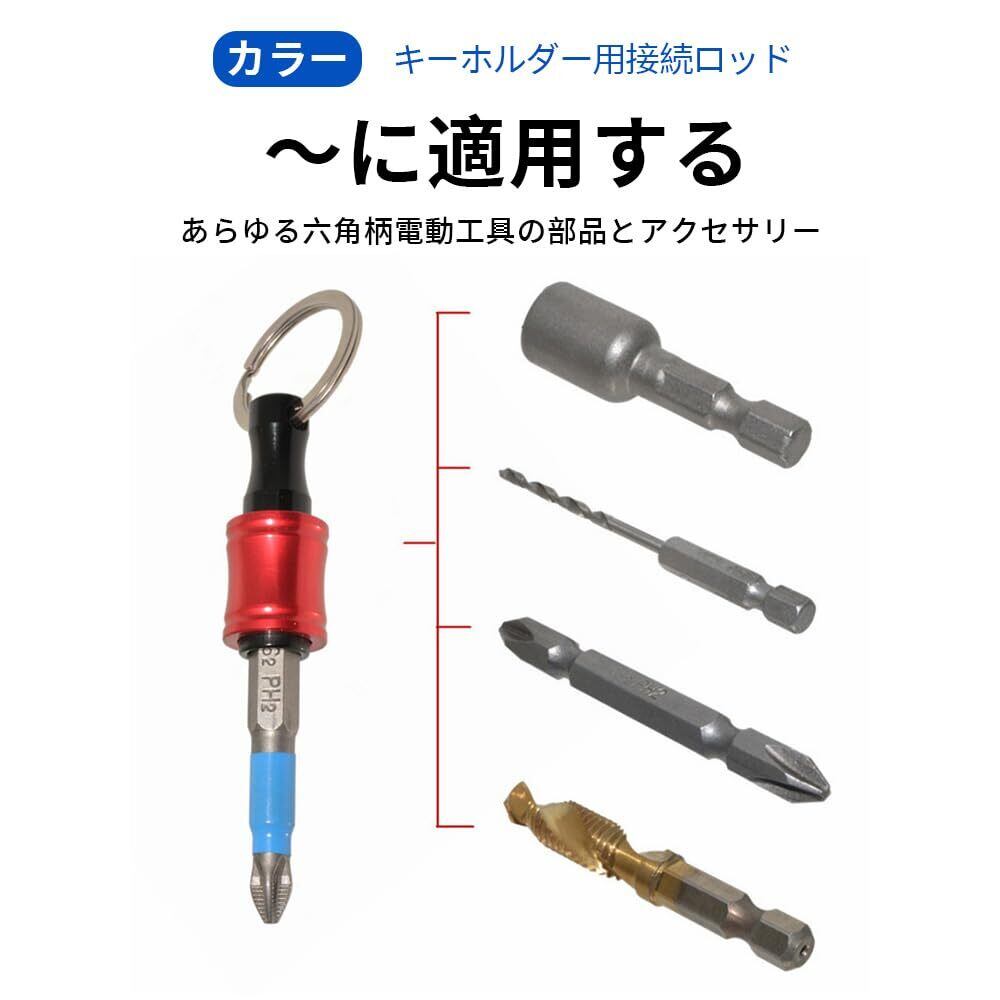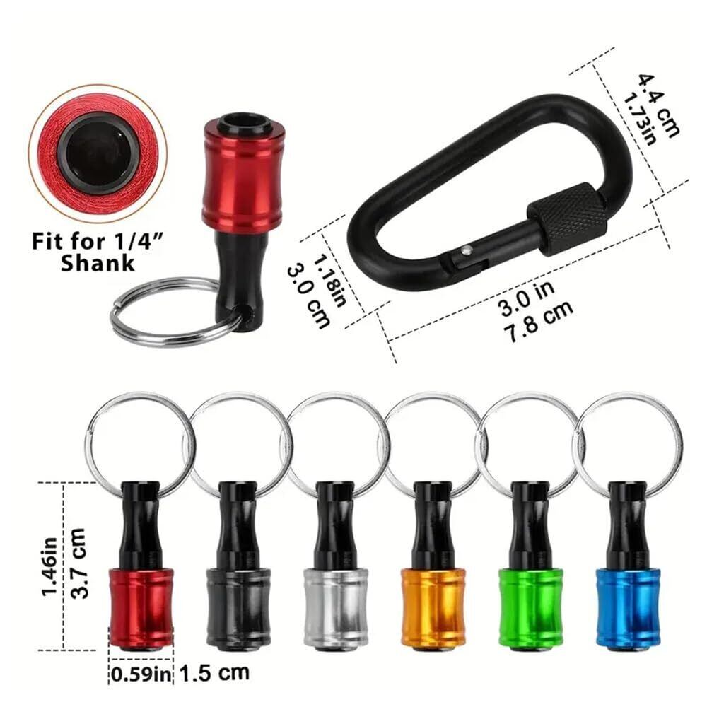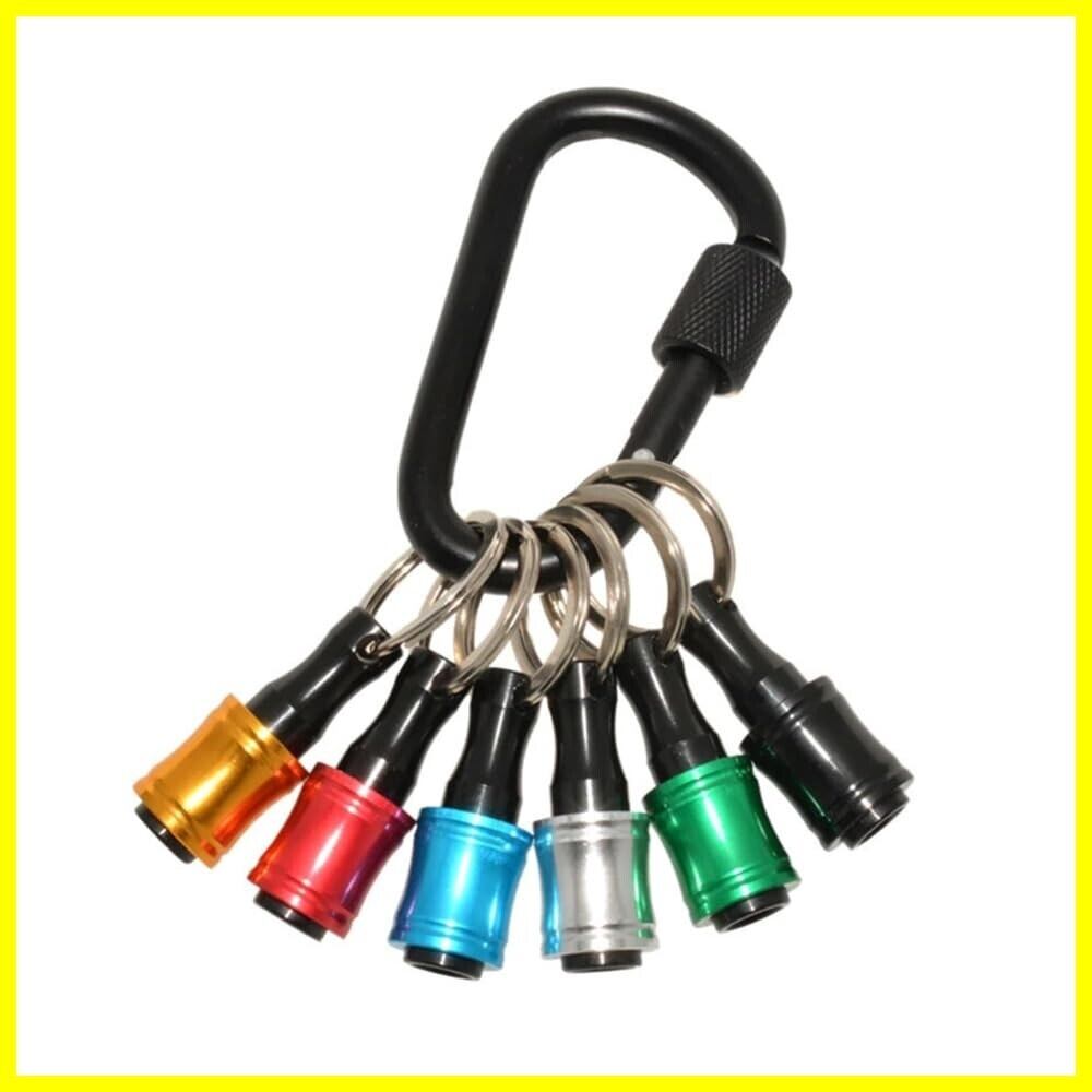 [六角軸ビットホルダーキーチェーン アルミ合金製ビットホルダー6個セット カラビナ付き 6.35mm(1/4")多機能 引き上げ式インパクトドリル ナットドライバー対応 六角軸 落下防止設計 携帯用工具収納 カラフル 軽量コンパクト]