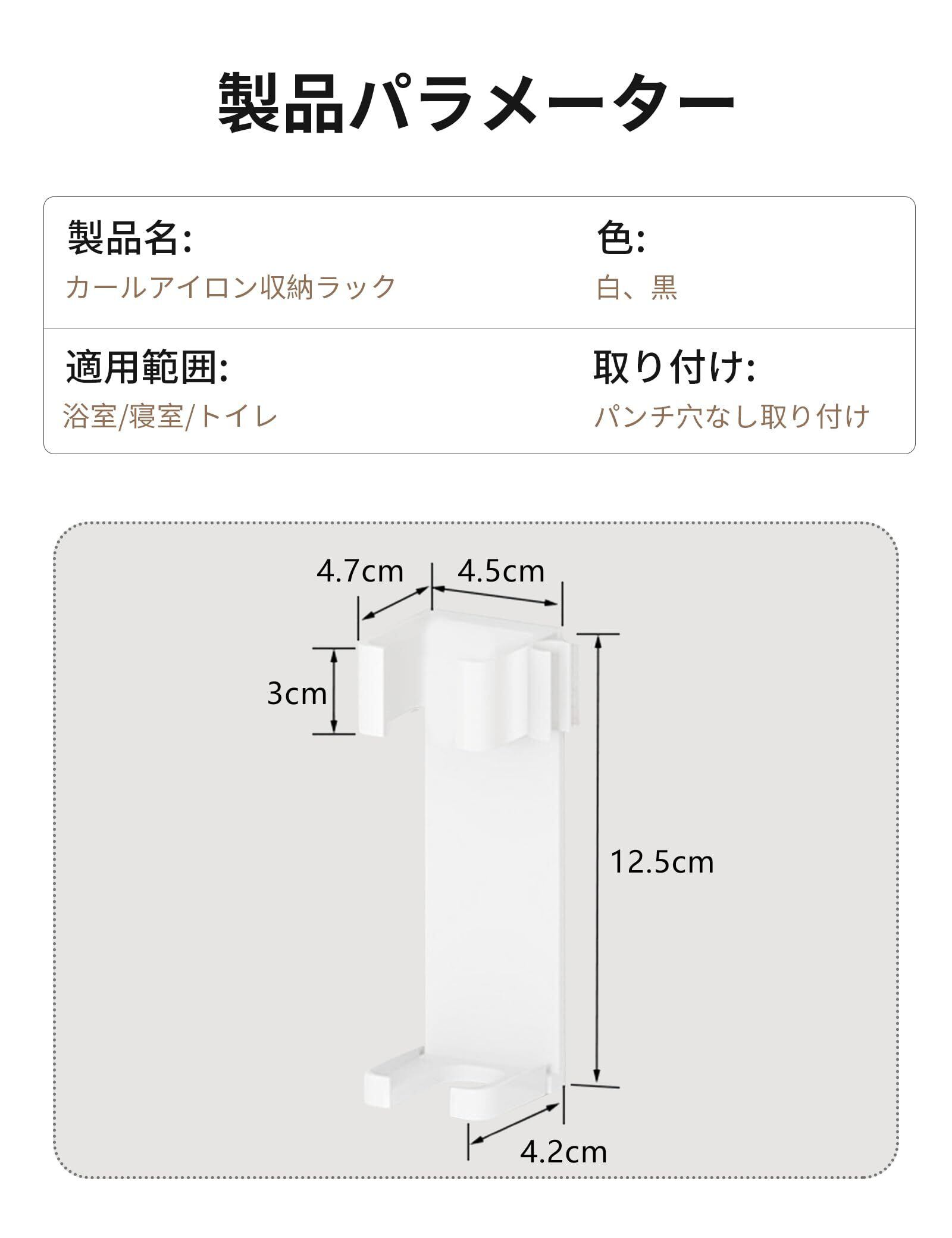 【簡単設置】穴あけ不要。 耐熱 ヘアアイロンホルダー、自己粘着性の壁取り付け、穴を開ける必要がなく、直接貼り付けるだけです。ご注意:粗すぎる表面には適していません。