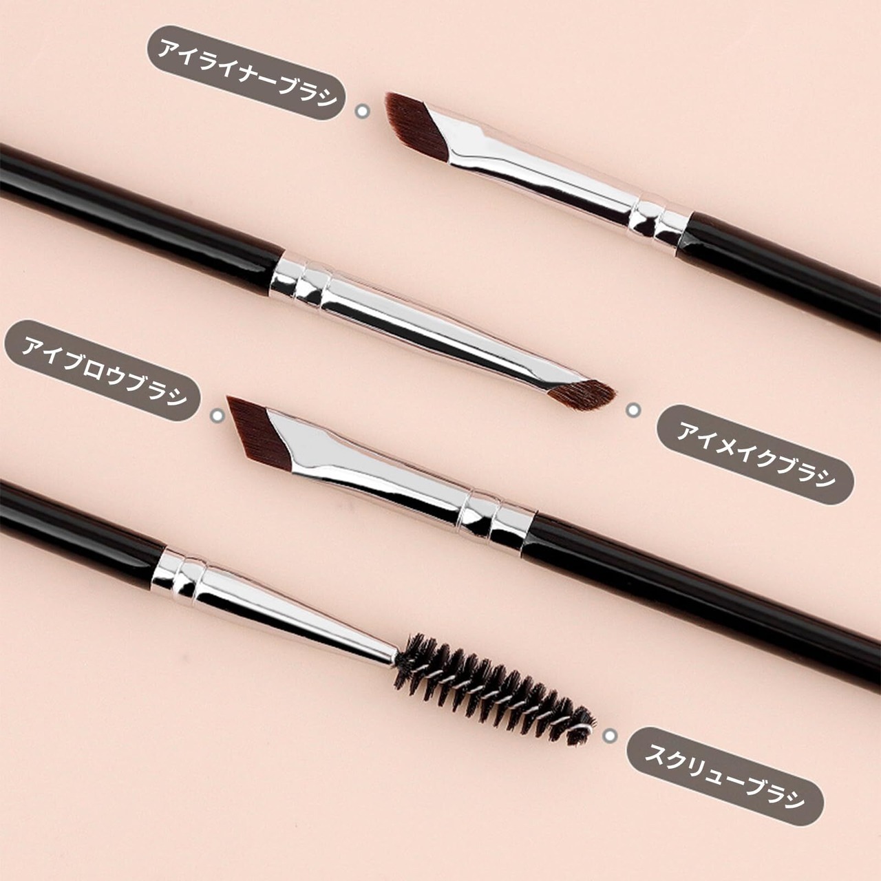 このセットにはアイブロウブラシ、アイライナーブラシ、アイシャドウブラシが含まれており、輪郭ブラシとしても使用できるため、様々なメイクスタイルに対応します。ノーズシャドウブラシとしても活躍し、立体感のある美しい仕上がりを実現します。