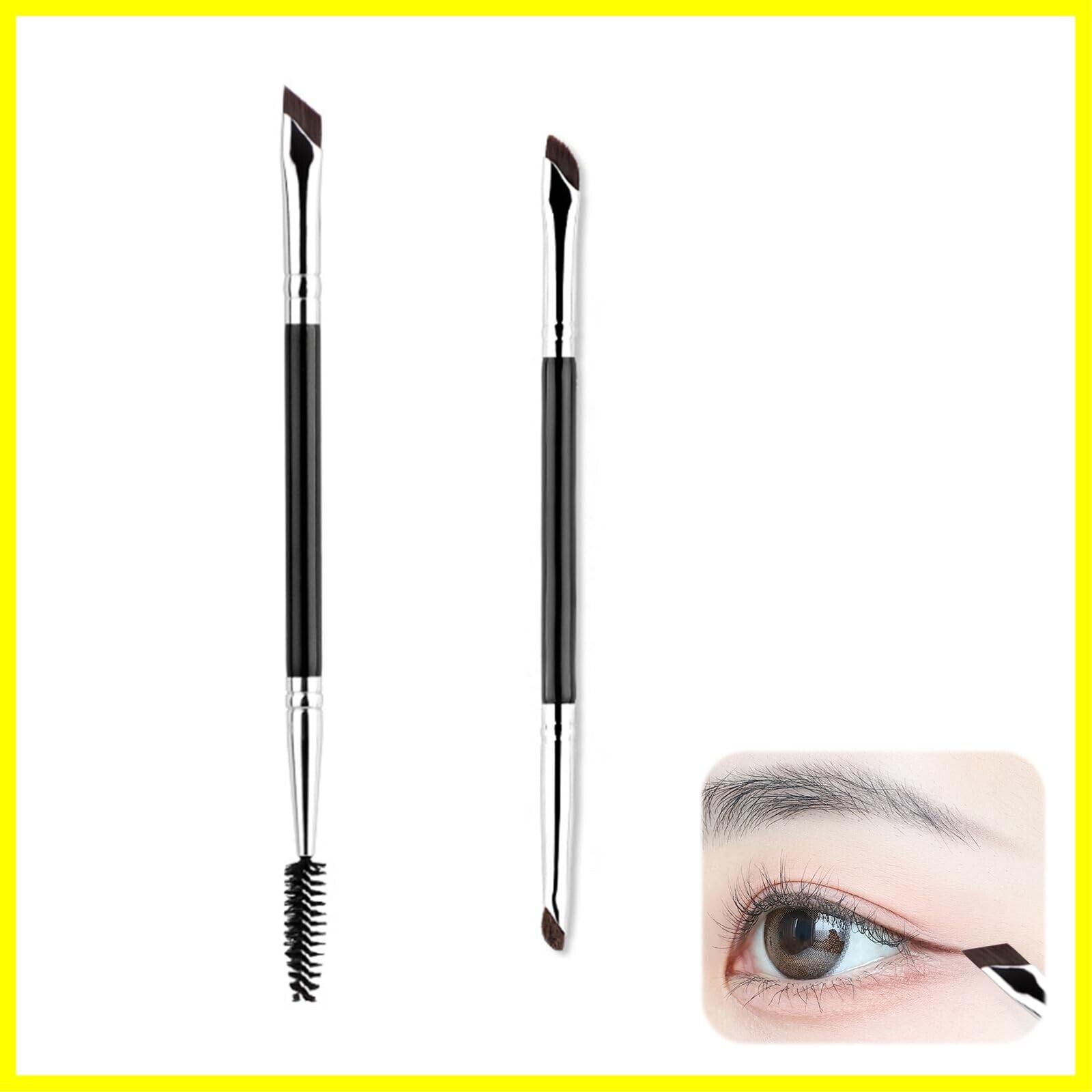 [aninako アイブロウブラシ アイライナーブラシ アイシャドウブラシ 2セット 動物毛 天然毛 2in1 メイクブラシ 輪郭ブラシ ノーズシャドウブラシ 化粧ブラシ 持ち運びに便利 化粧筆]