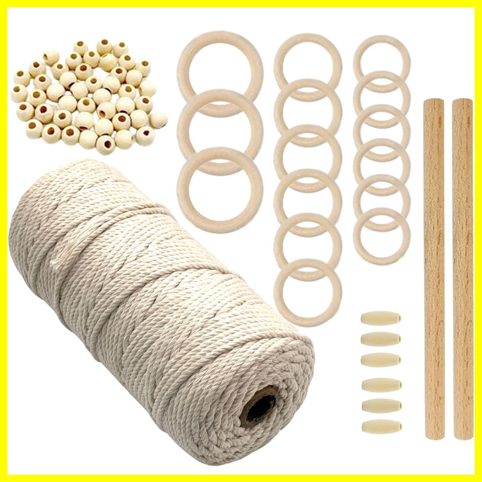 100%コットンの紐を使用したマクラメキット。手触りが良く暖かみのある仕上がりが特徴です。リングやタペストリー棒など付属品も揃っており、初心者セットとしてDIYや手芸に最適です。天然素材ならではの風合いが魅力の手芸アイテムです。