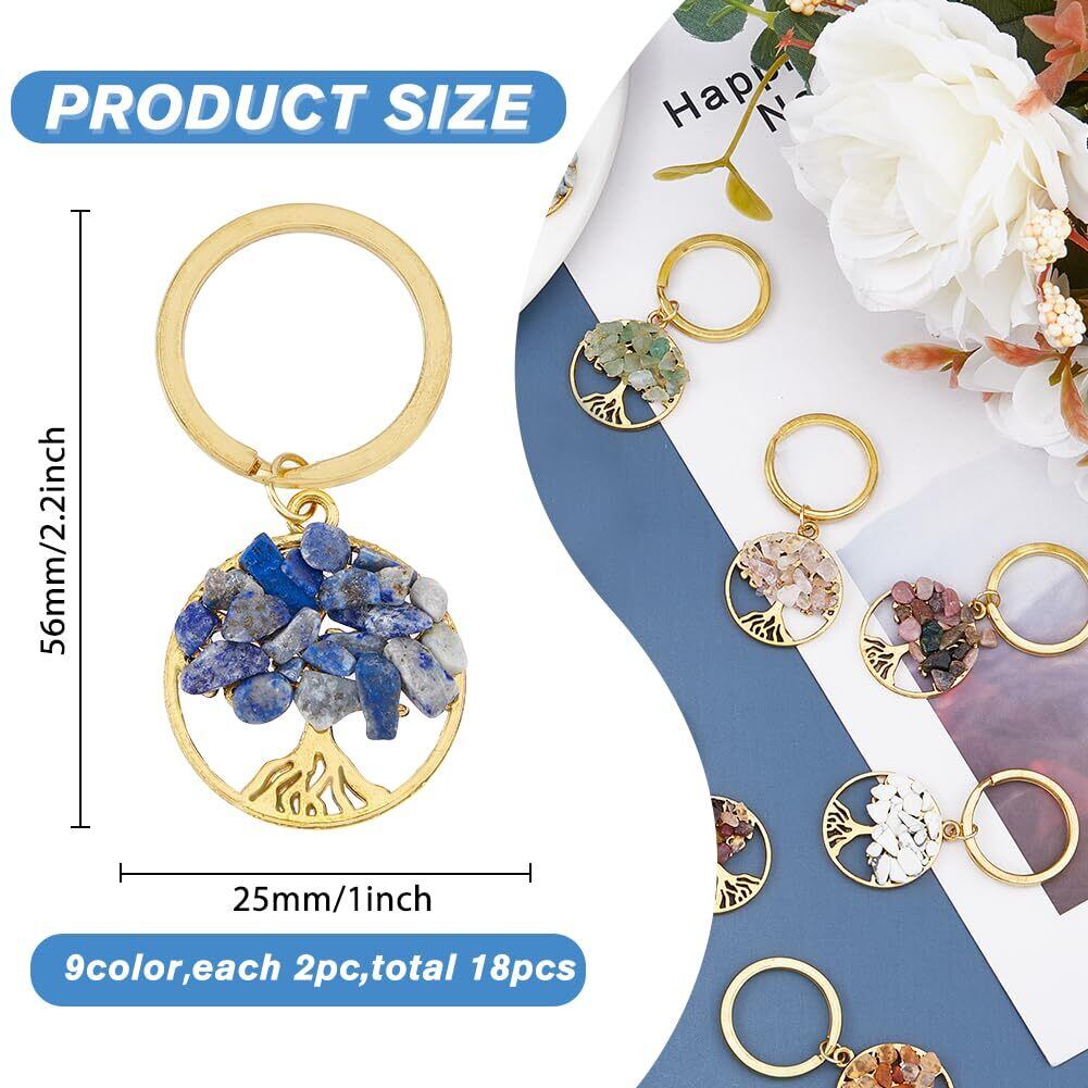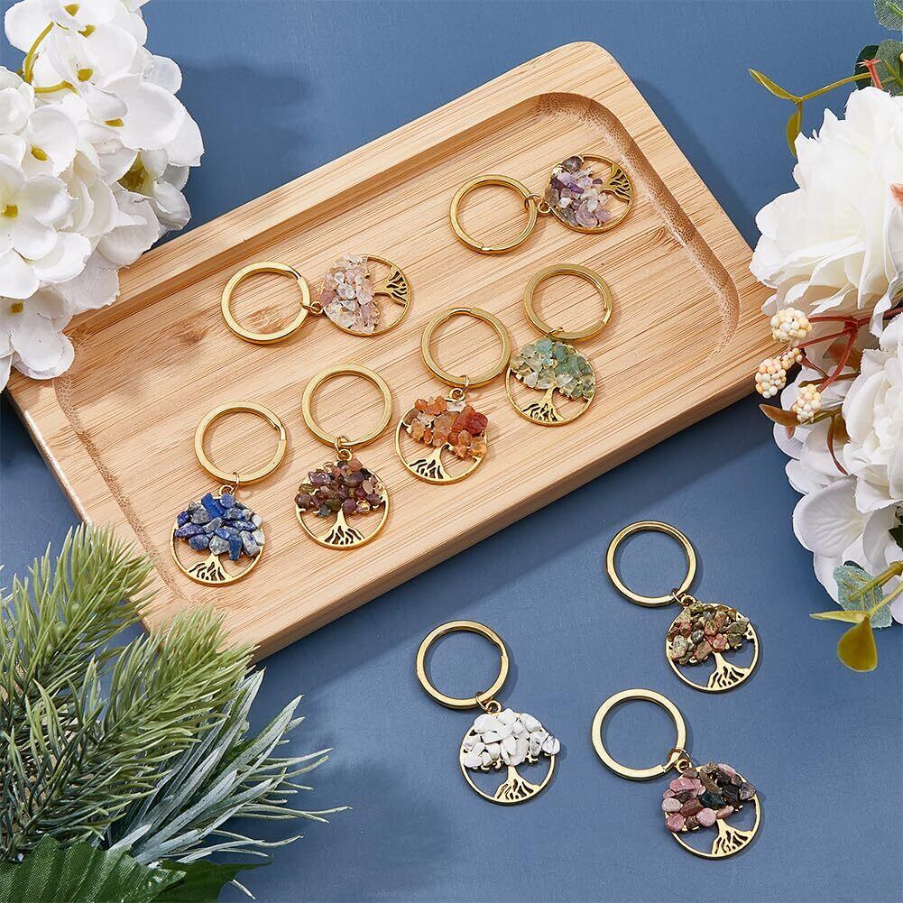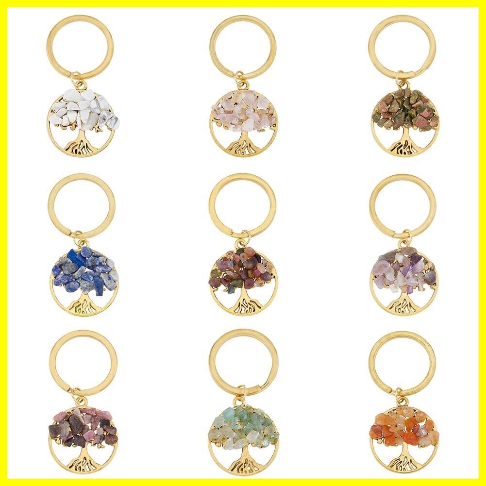 [SUPERFINDINGS] 9スタイルツリーオブライフキーホルダー 天然水晶石ハンドメイドDIYキーホルダーチャーム18個入り