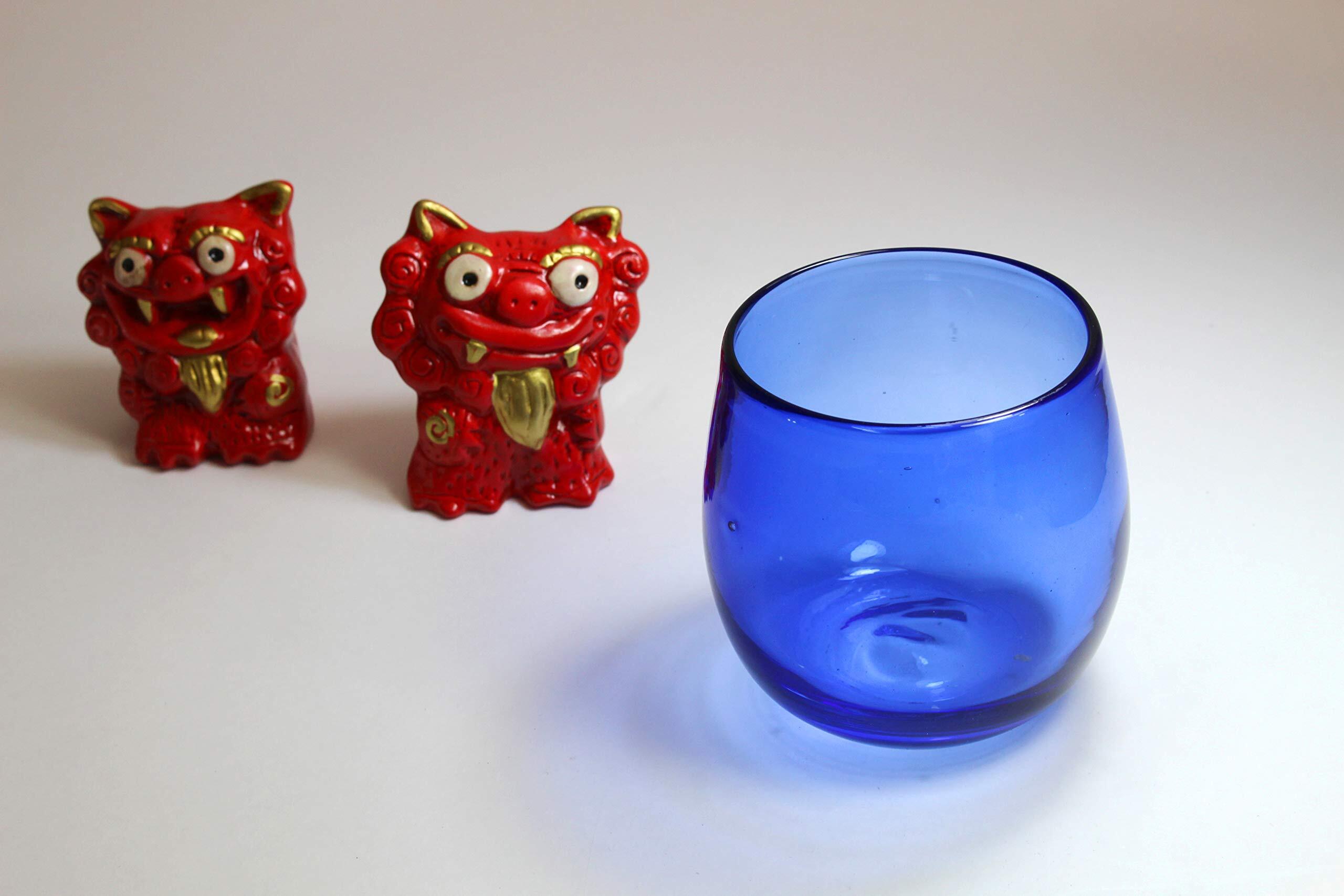 新 インスタ映えする 琉球風 手作り たるグラス(大)青