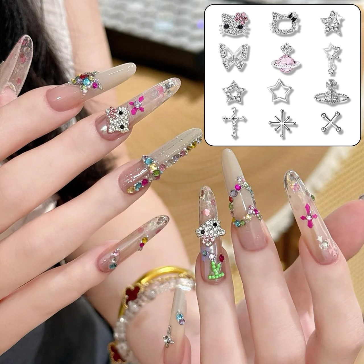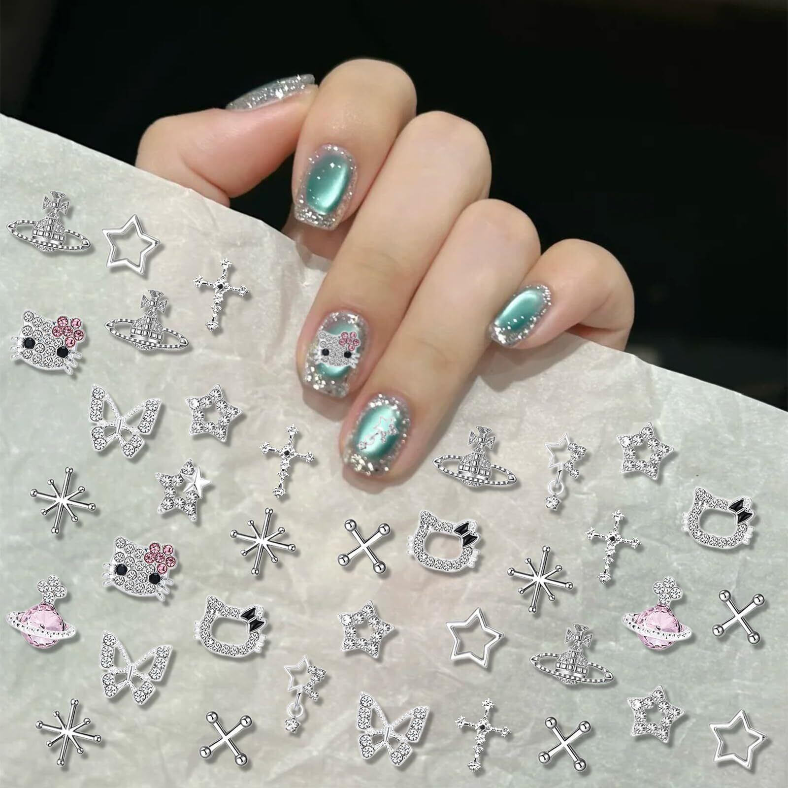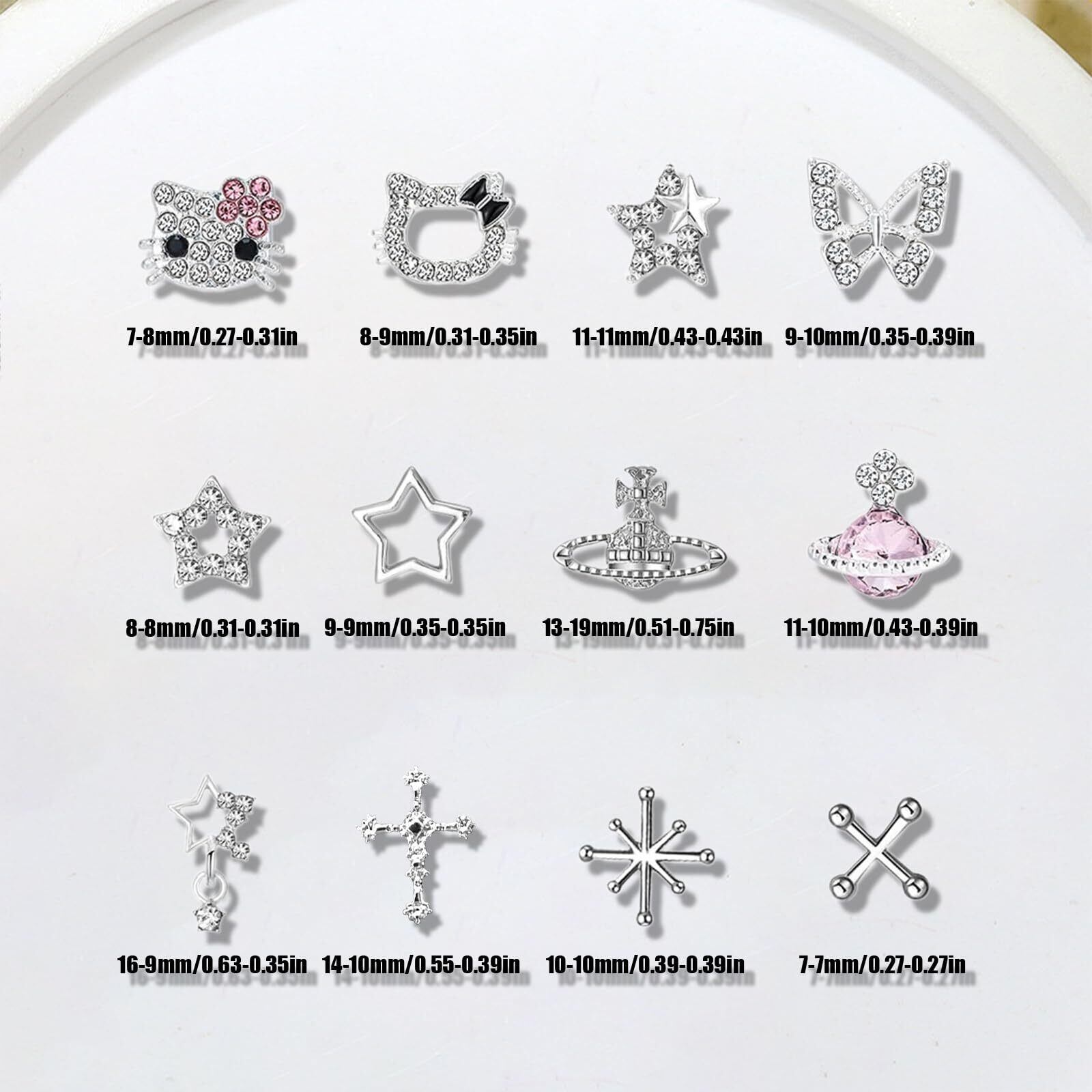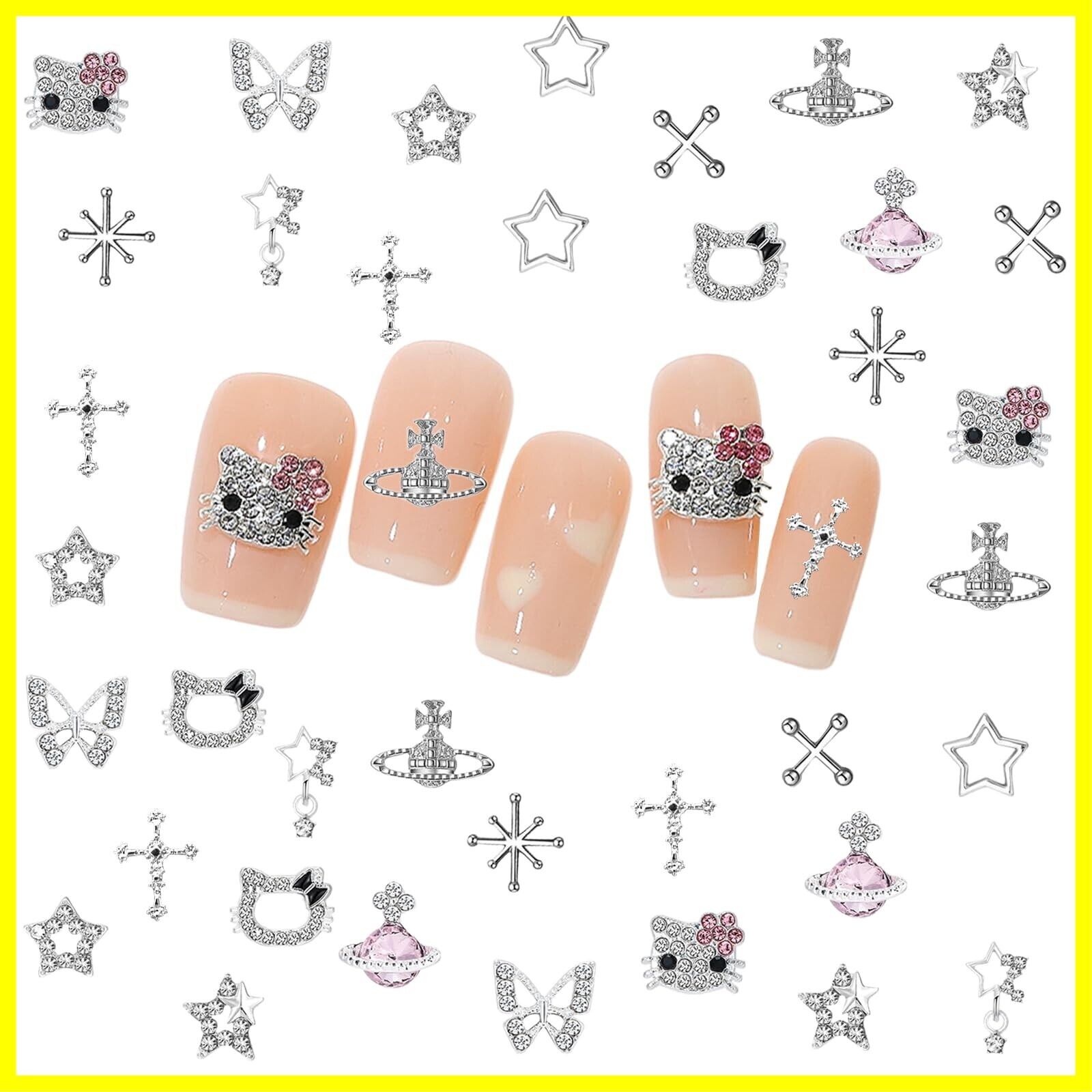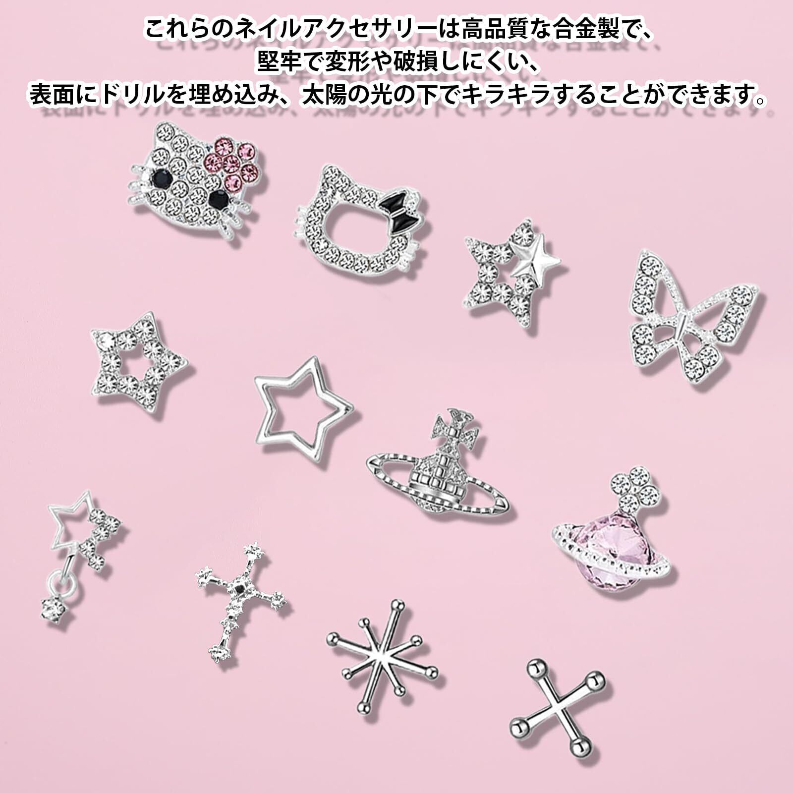 【可愛いネイルパーツ】星、クロス、惑星、キティ、蝶などを揃っているネイルパーツです。種類が豊富で、見た目が可愛くてお洒落です。ネイルのワンポイントにぴったり!