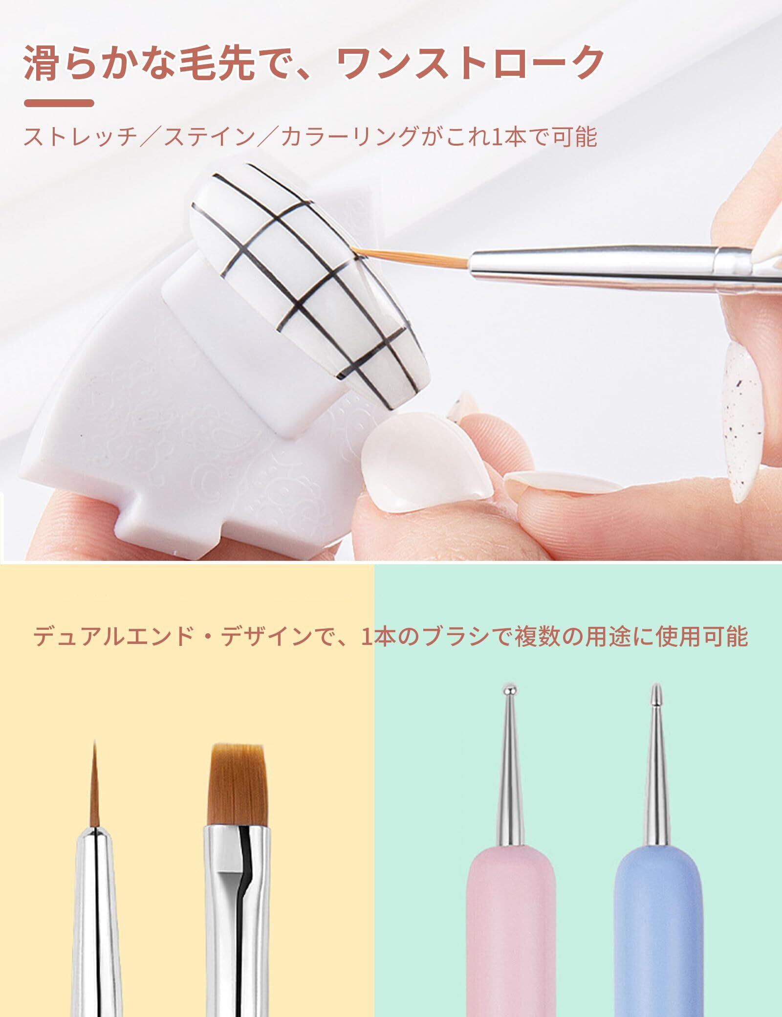 【ギフトとして】高品質のブラシとネイルドッティングペンの完全なセット、ファッショナブルで実用的なデザイン、自宅やプロのネイルサロン学習者に適しています。 DIYネイルアートが好きな方やプロのネイルアート学習者の方へのプレゼントとしてもご利用いただけます。