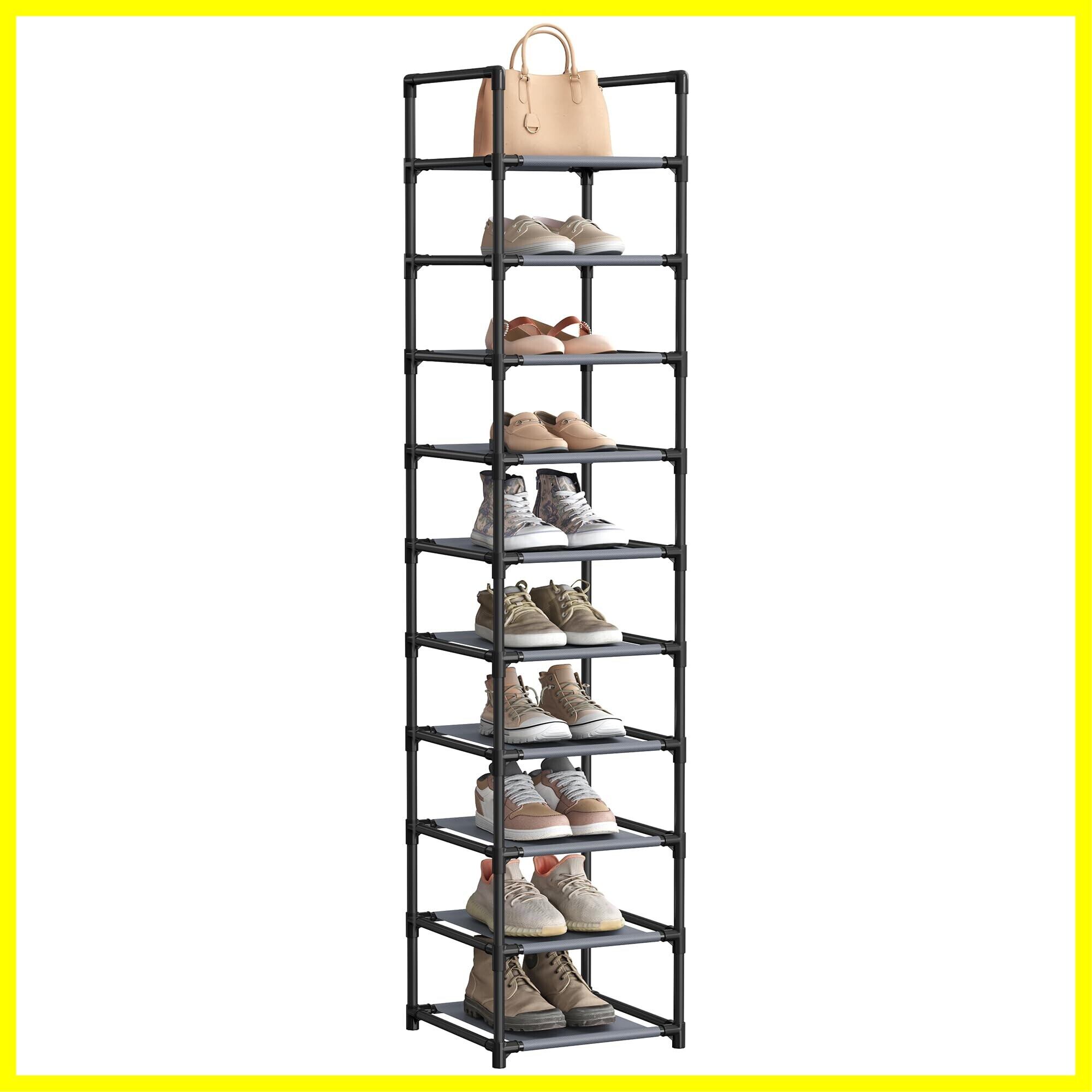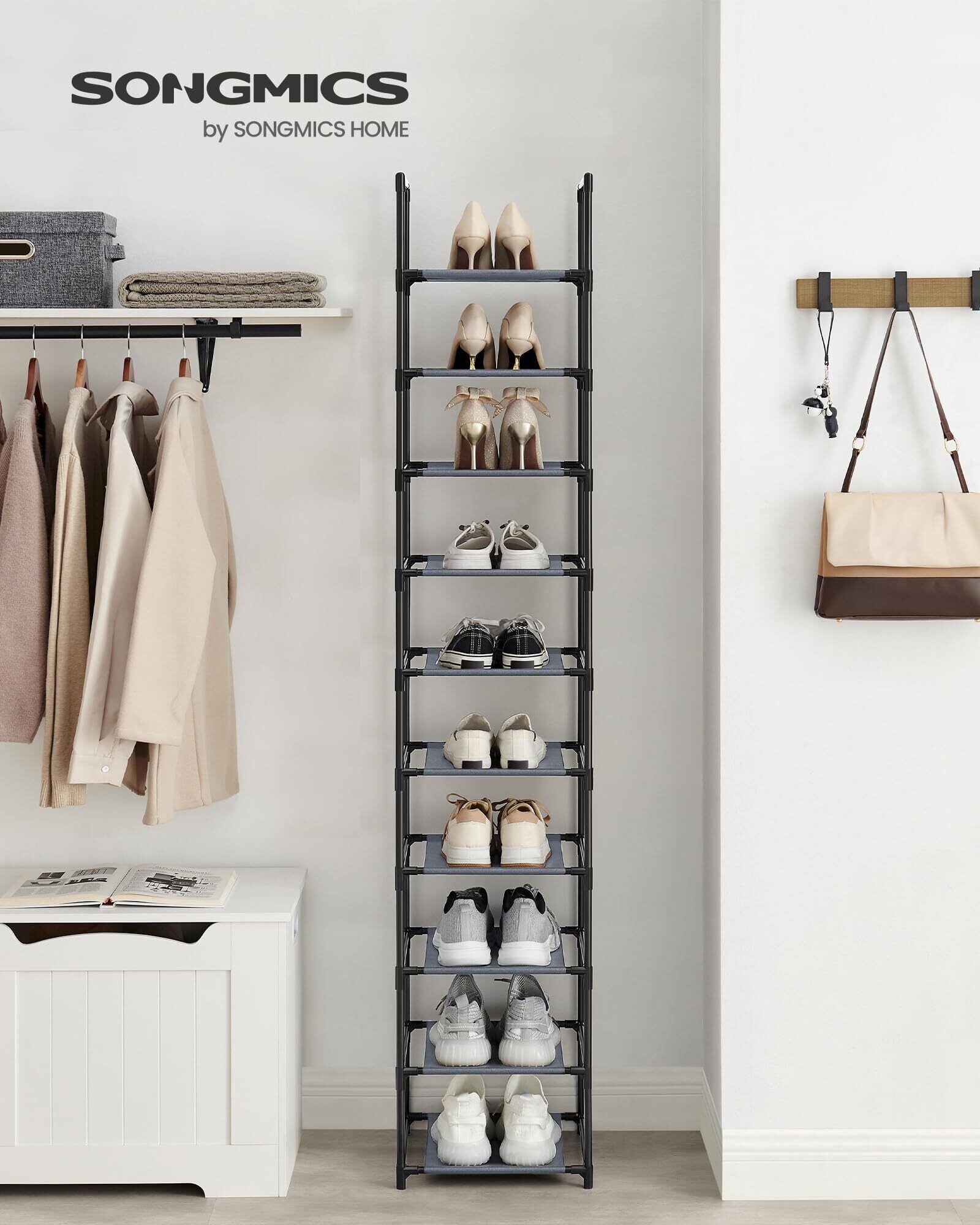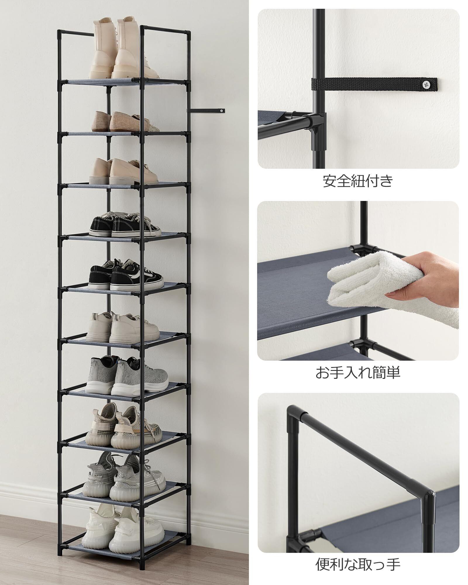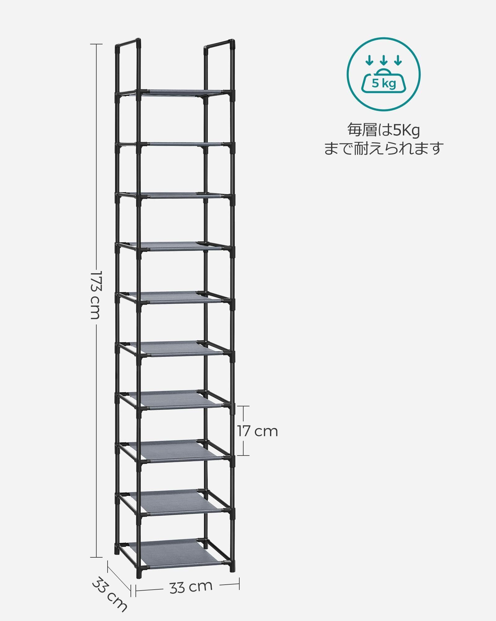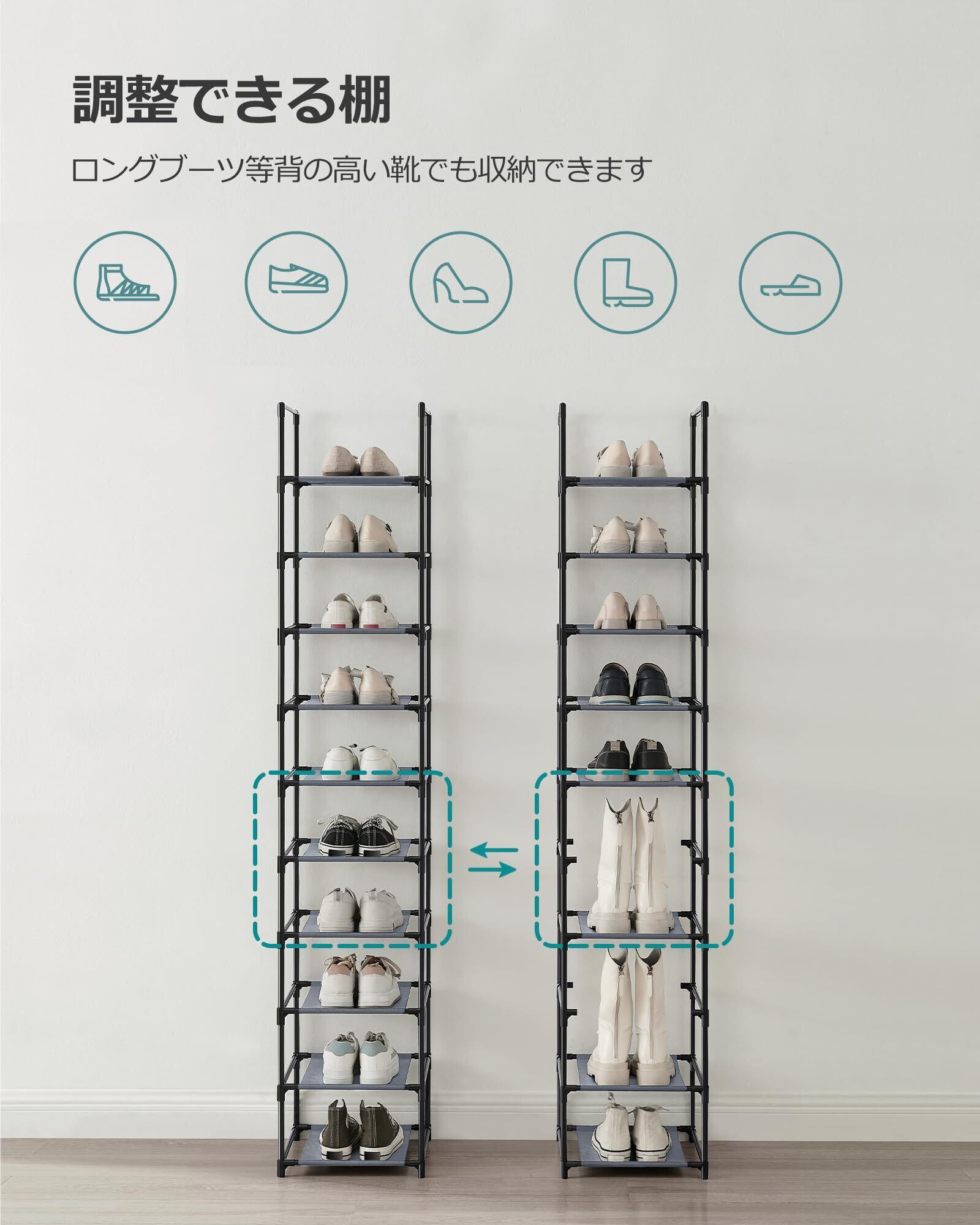 [SONGMICS シューズラック 10段 靴棚 下駄箱 省スペース 分割可 玄関すっきり 奥行スリム33cm 玄関に靴を効率収納 LSR110G01]