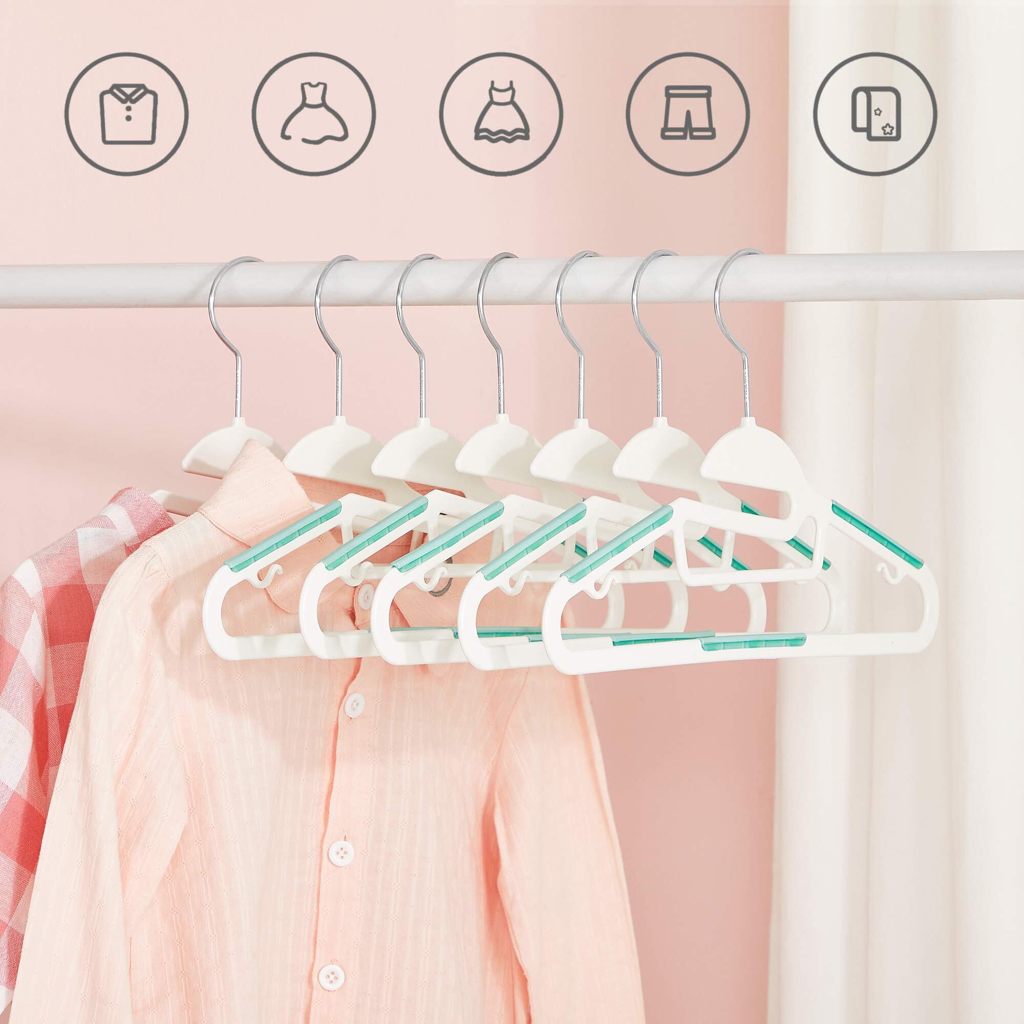 [SONGMICS ハンガー こども用 すべらない ジュニアハンガー キッズハンガー ベビーハンガー 型崩れ防止 20本セット 襟を守る 省スペース スリム 多機能 プラスチック 洗濯用 可愛いグリーン CRP30Q]