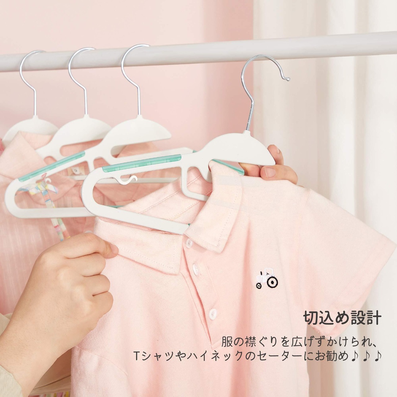 お子様の服に優しい作りで、型崩れを防ぎながらすっきりとした収納を実現します。20本セットでご用意しているので、お気に入りの洋服をたっぷり収納でき、クローゼットを有効活用できます!