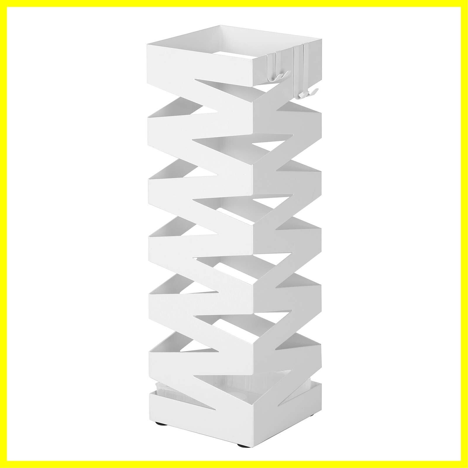 SONGMICS 傘立て かさたて スリム おしゃれ 業務用 ホワイト 水受けトレイ付き 15.5x15.5x49cm LUC16W