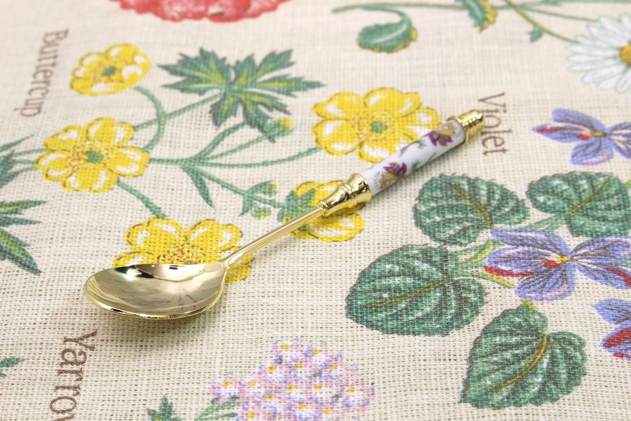 ハドンホールコレクションの美しい装飾が施されたこのティースプーンは、どんな食器とも調和し、シンプルながらも印象的な存在感を放ちます。特別な日の午後のティータイムや、おもてなしにも最適なアイテムです。
