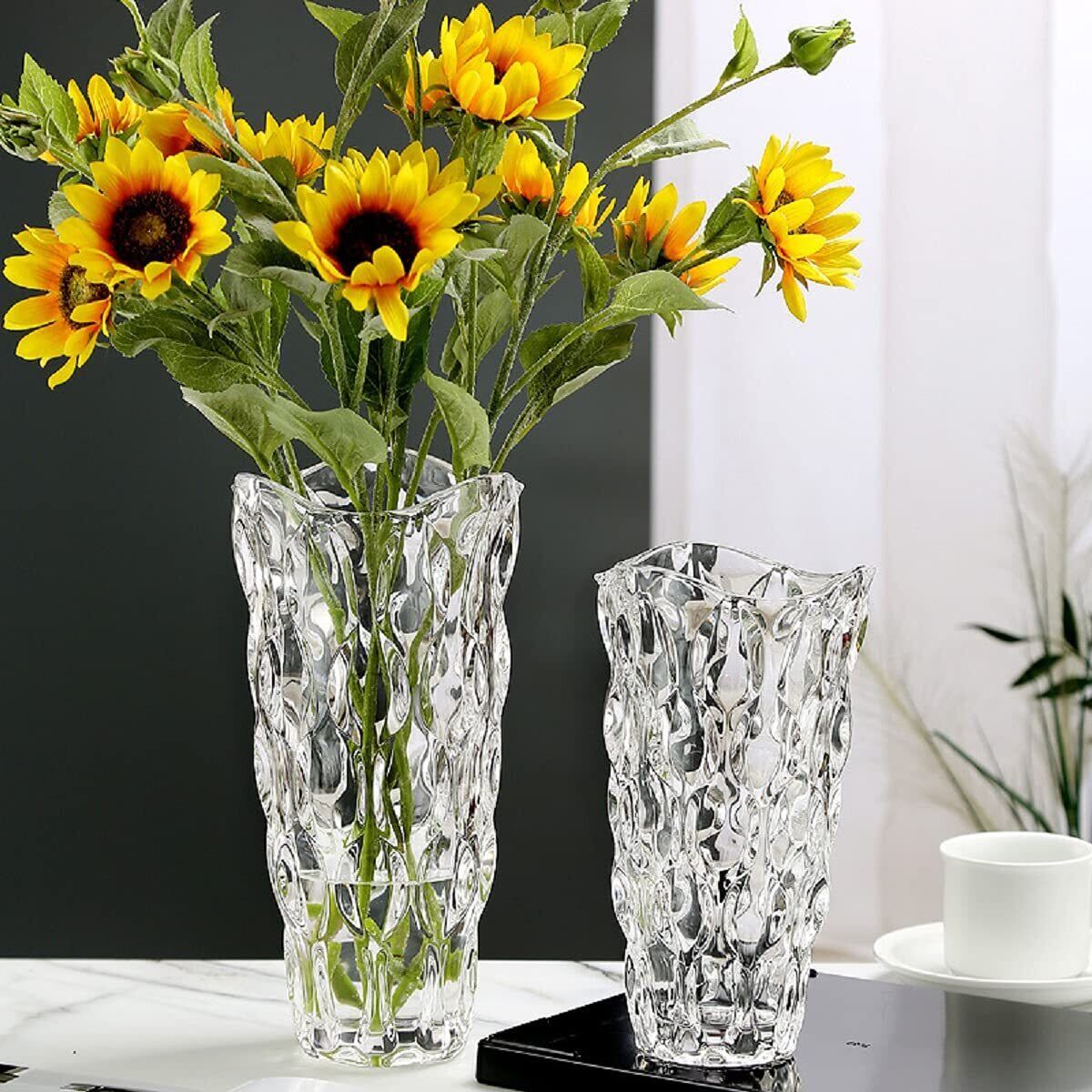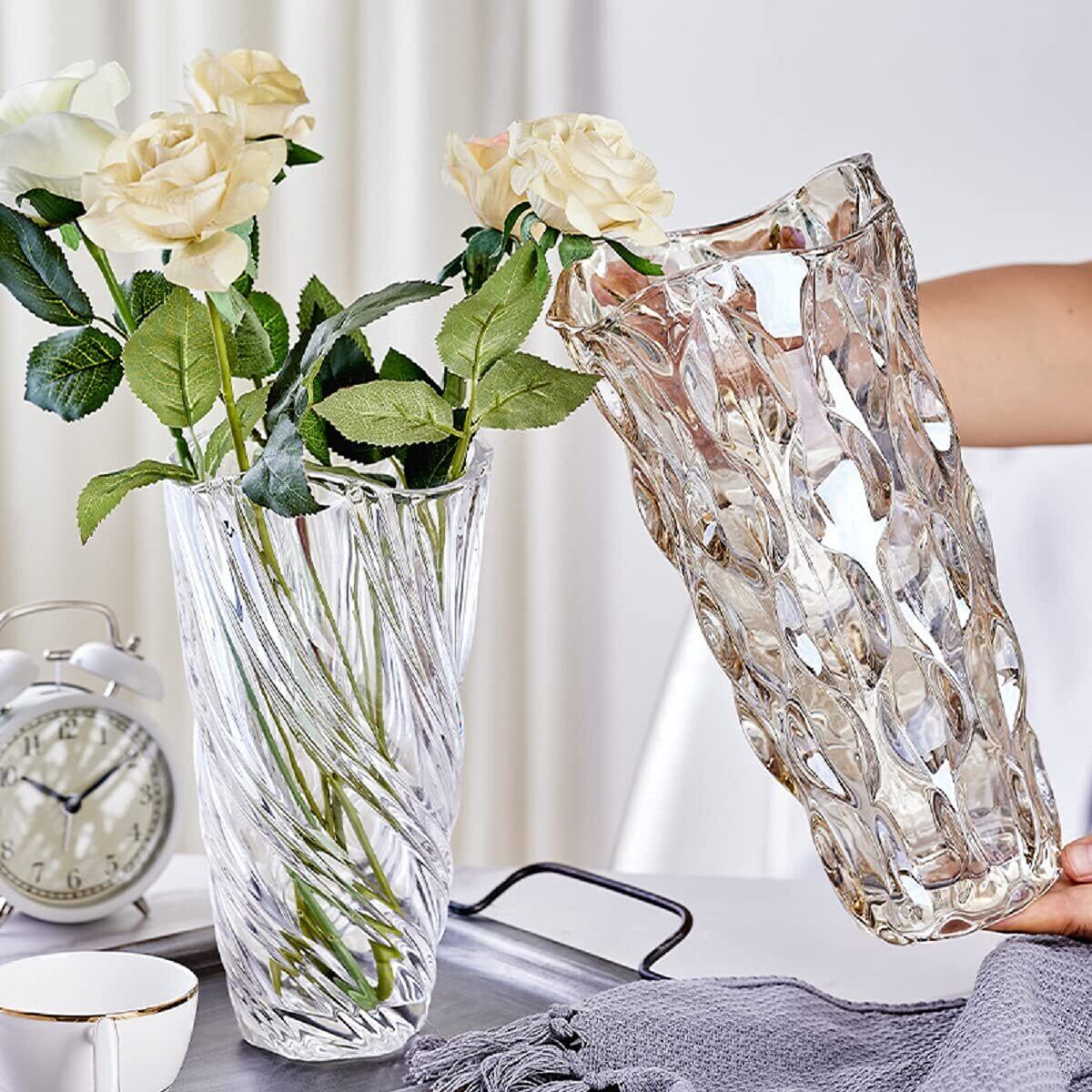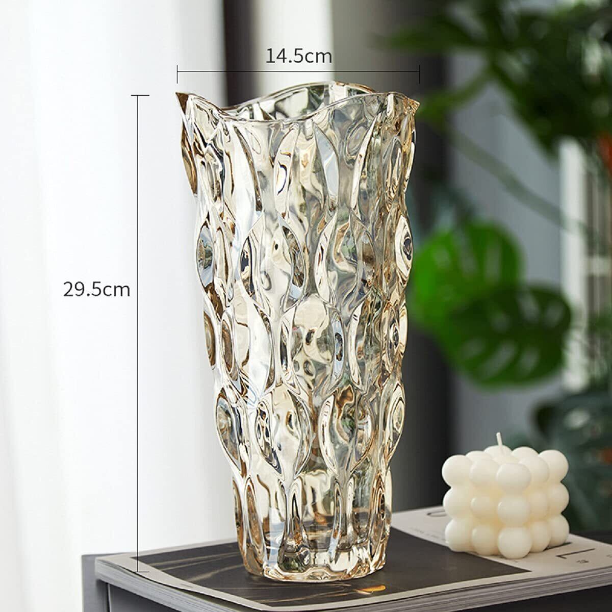 ガラス フラワーベース 透明 花瓶 ガラス おしゃれ 大 花瓶 北欧 花瓶 30cm グラデーション 現代 シンプル 透明 広口 花器 部屋 玄関 リビング インテリア プレゼント (シャンペン色-30cm)