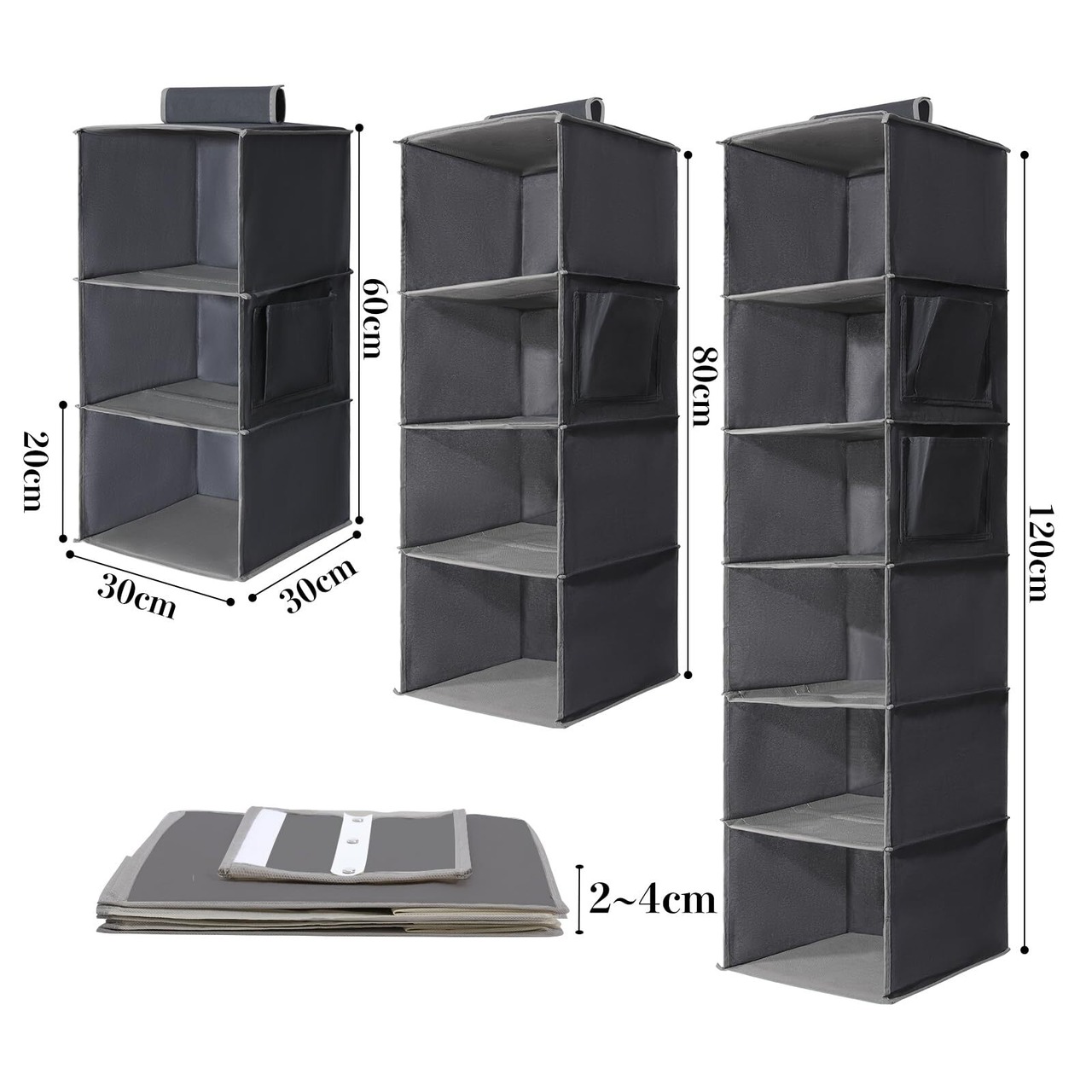 吊り下げ収納 6段 衣類ラック クローゼット 収納吊り下げ 【最新竹製天然版】大容量 帽子/鞄 収納ラック 取付簡単 折り畳み式 旅行/出張 30x30x120cm(グレー、6段)