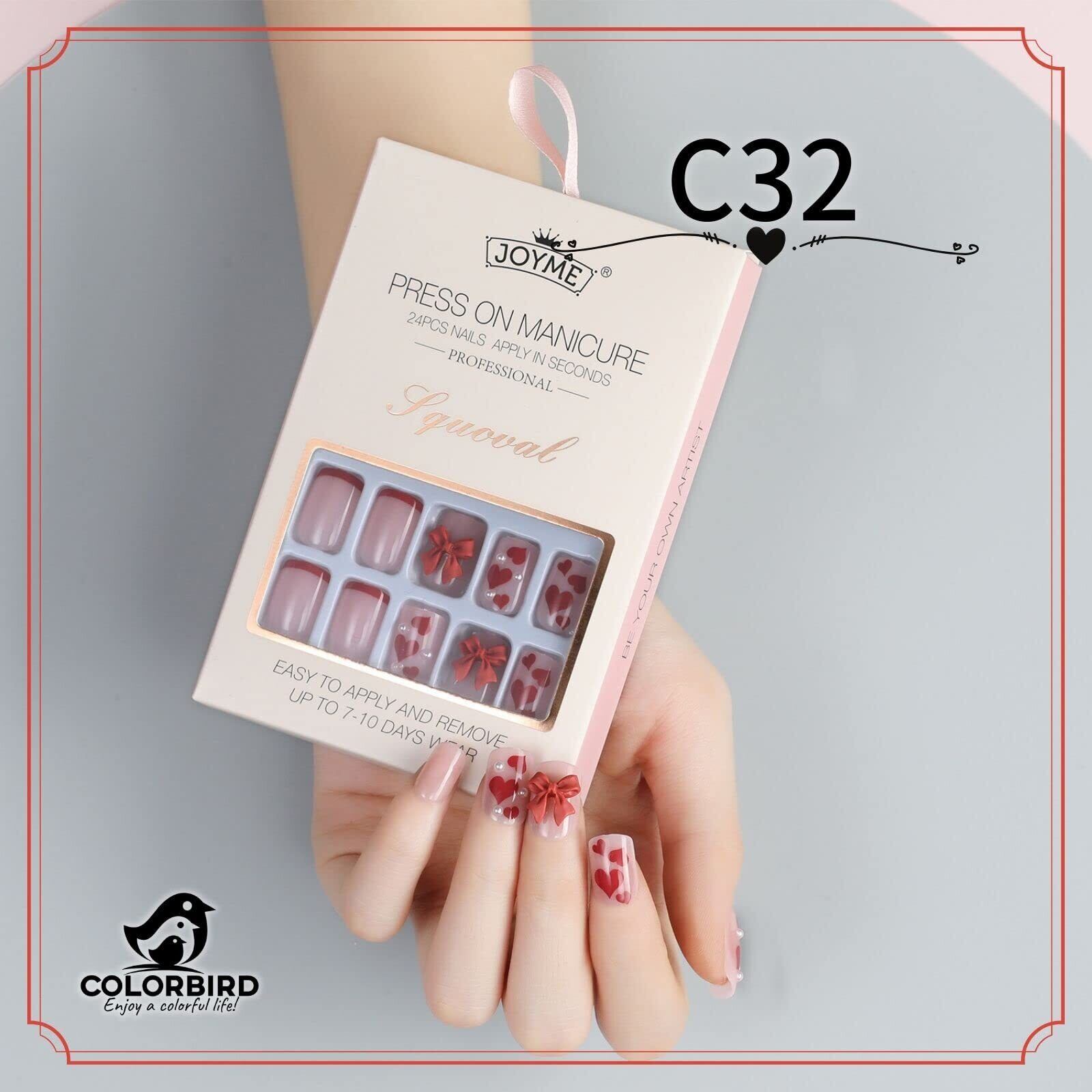 COLORBIRD ネイルチップ JOYME 24 スクエアオフ 24枚 エレガント 母の日 結婚式 マニキュア 大人 可愛い つけ爪 (C32)
