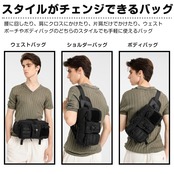 【2WAYウエストバッグ】新型な便利デザイン、2wayで使えます。バルトは調整できますが、お客様の腰回りによりピッタリと装着できウェストバッグです。肩に掛けて、すぐショルダー斜め掛けバッグになります。
