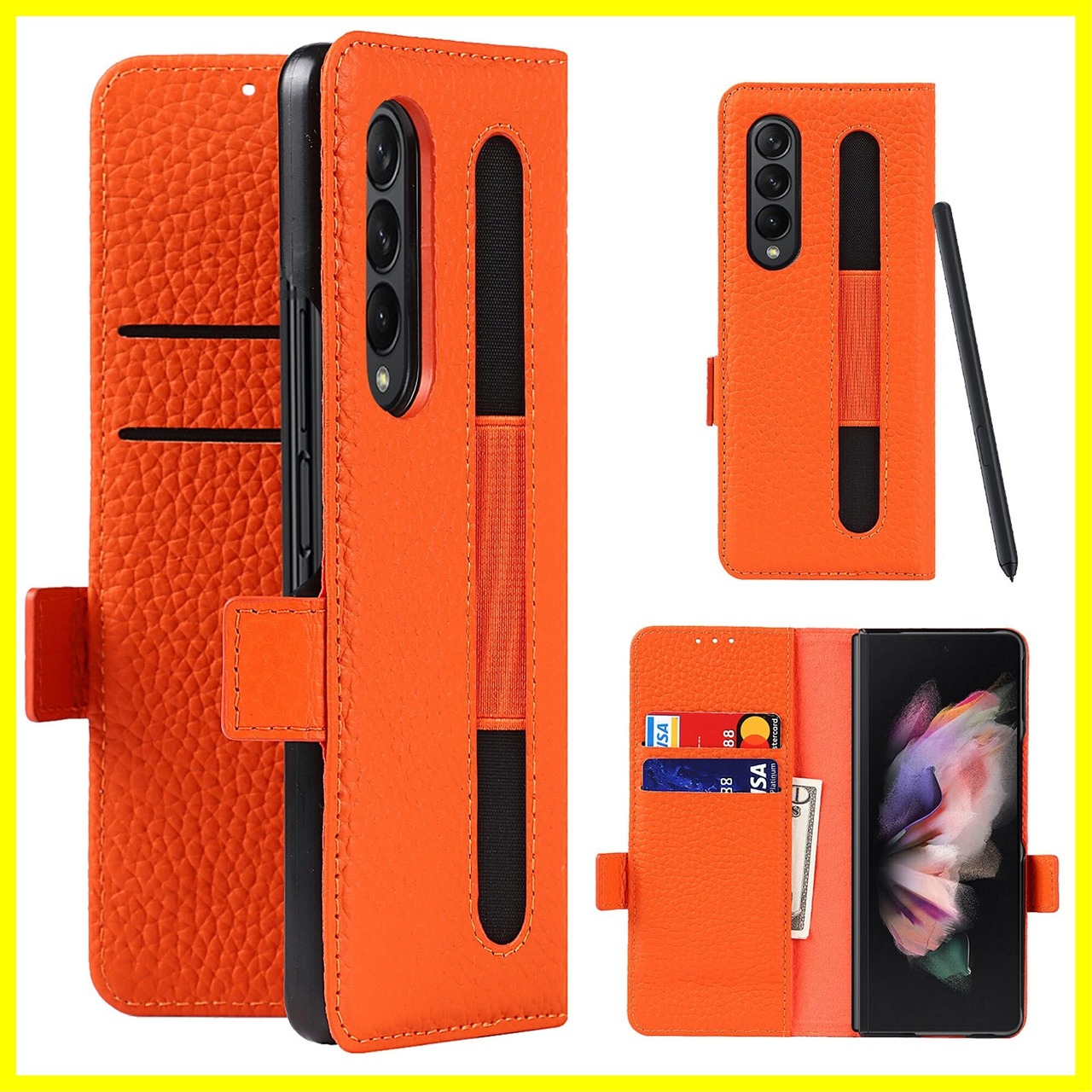 Galaxy Z Fold3 5G SC-55B SCG11 ケース サムスン galaxy z fold3 5g 手帳型 ギャラクシー z フォールド3 5g カバー sc-55b 手帳ケース sog11 case Zouzt 牛革 本革レザー 本皮 財布型 カード収納 スタンド機能 Sペン収納機能付き マグネットバックル 耐衝撃 おしゃれ 6色 オレンジ