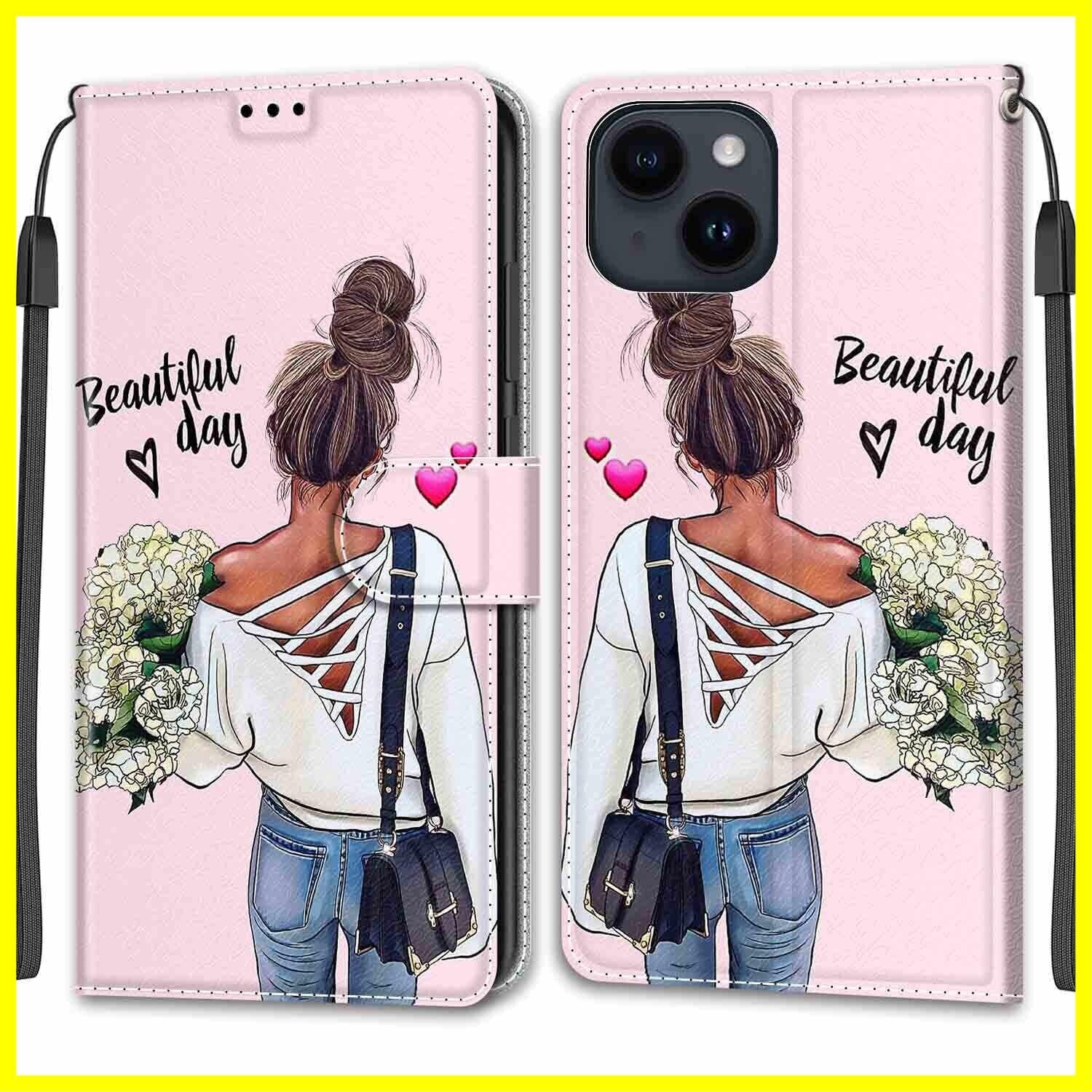 iPhone 14 / 13 ケース手帳型 13 スマホケース 携帯カバー レザー 耐衝撃 耐摩擦 全面保護 マグネット式 カード収納 スタンド機能 手触りが良い 人気 上質 6.1インチ対応 女の子と花