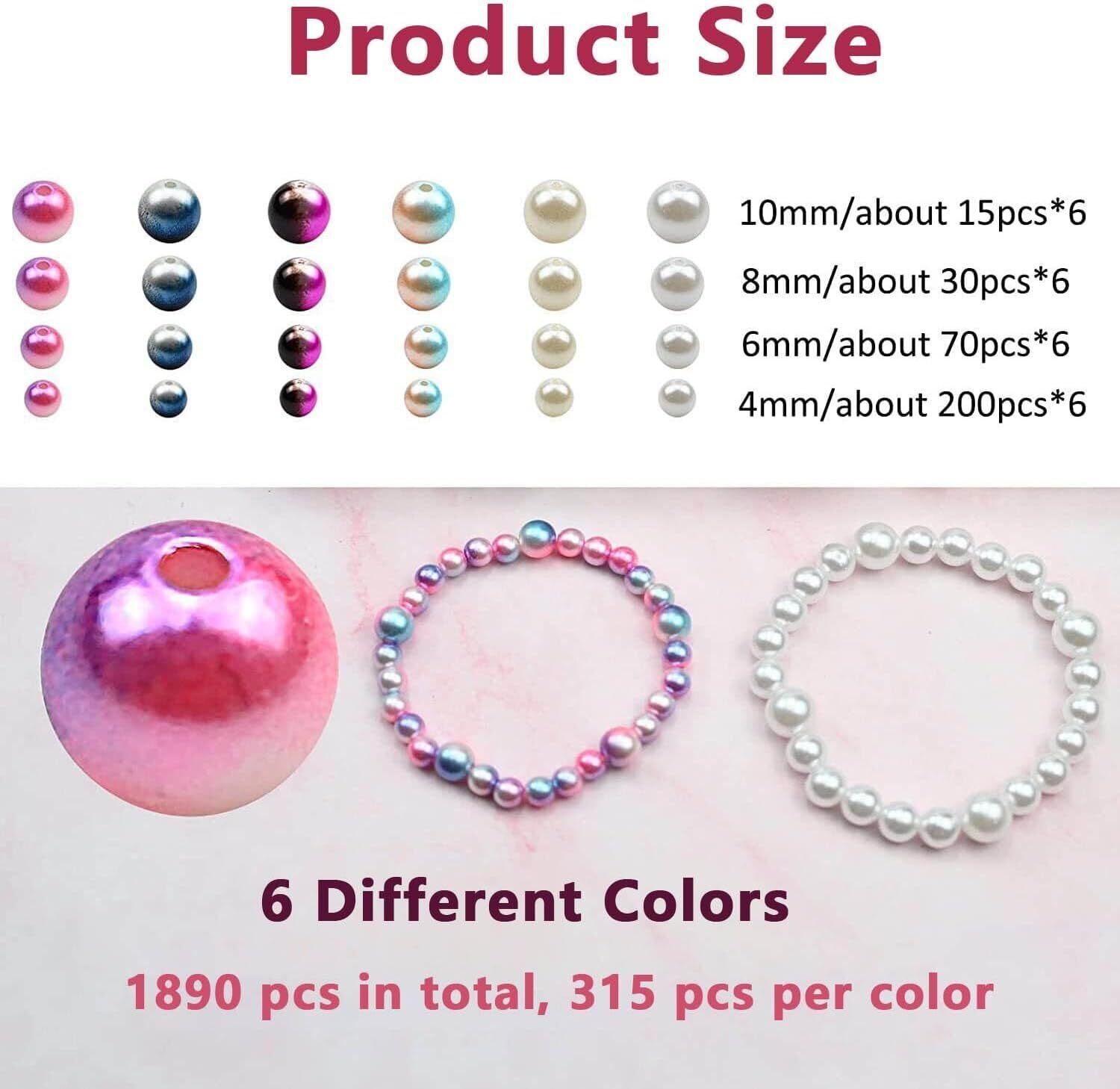 約1680個 パールビーズ BetterJonny 6色 両穴しカラーパール ラウンド ビーズ 丸玉 手作り用品 DIY用 手作りアクササリー 4mm 6mm 8mm 10mm