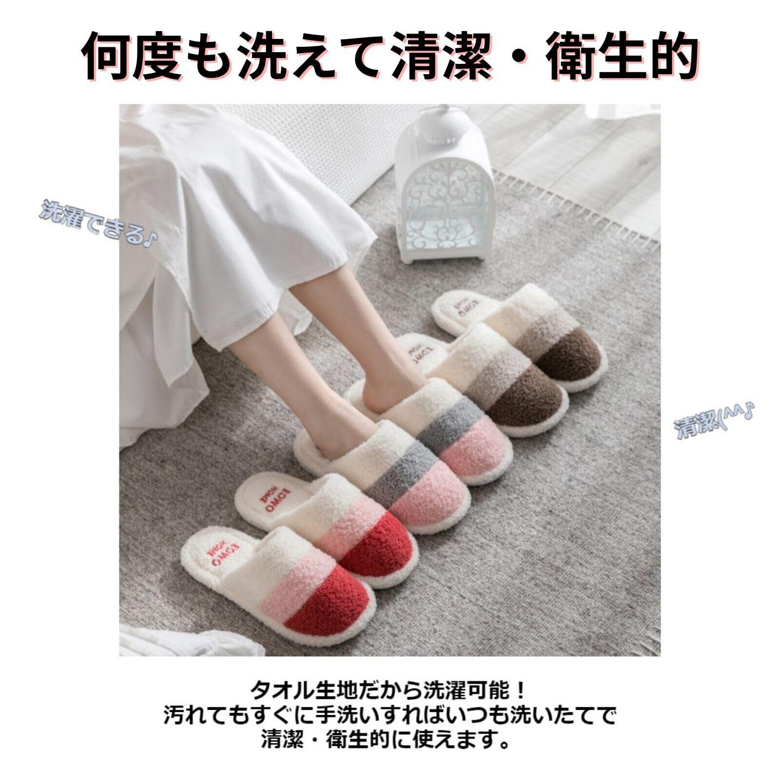 [Modest Joy] スリッパ 室内 もこもこスリッパ おしゃれ かわいい 洗える タオル生地 パイル 北欧 ルームシューズ レディース ボーダー トイレ